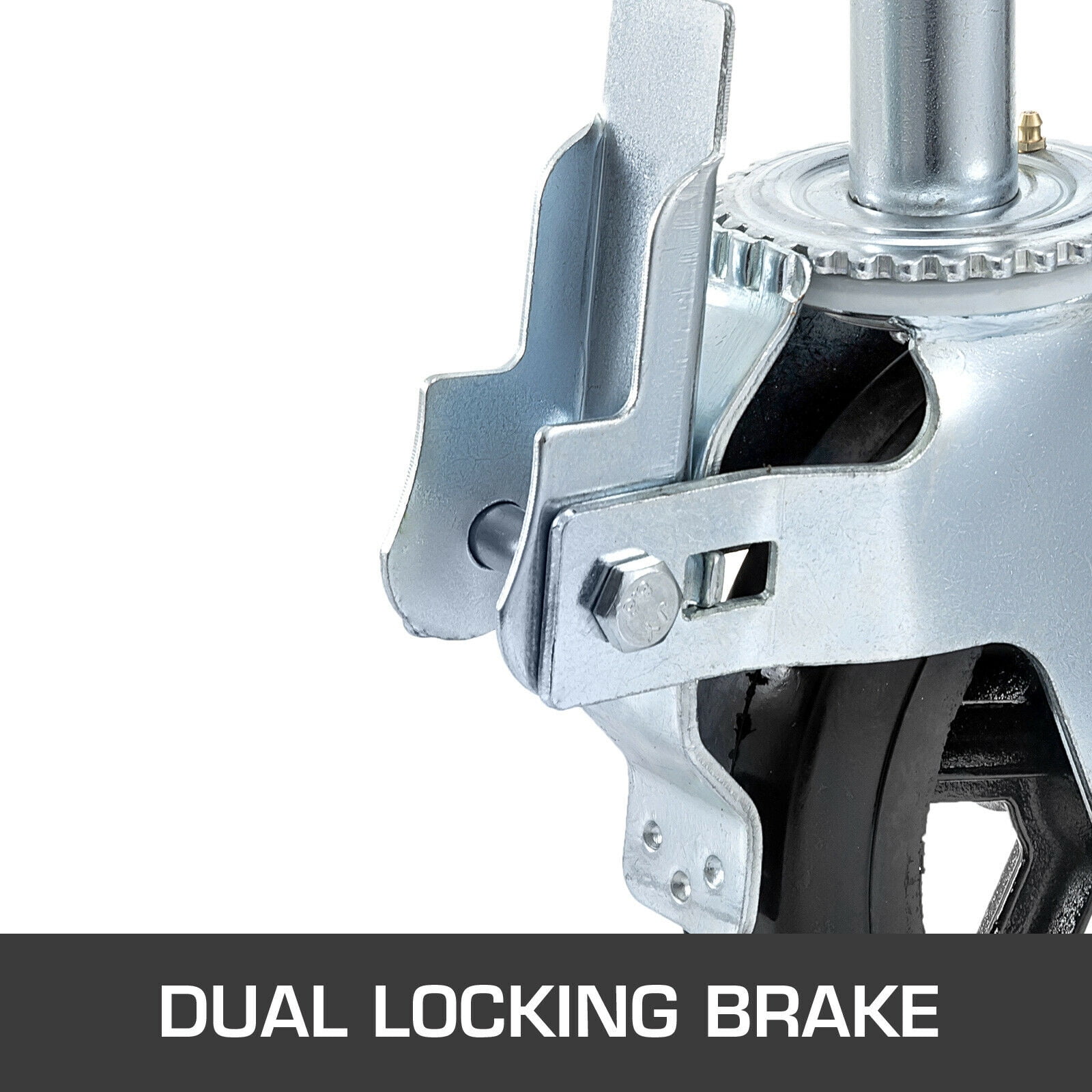 Description The highest quality industrial grade Scaffolding caster wheels made of non-marking rubber type, can roll smoothly and silently on any floors. 360° rotation design make it more flexibly to transform direction. Steel structures body is extremely hard wearing and resistant to dirt.1100lbs capacity for each caster. It can provide instant mobility for stationary objects in your workshop, garage, warehouse, offices and much more. 360° Rotation Solid Rubber Wheels Double Lock Mechanism 1100lbs Capacity Heavy Duty Bracket Features 【360° ROTATION】 – The top plate equipped with premium steel balls, can rotate 360 degrees swiftly and smoothly with ease, easy to flexibly transform directions. 【SOLID RUBBER WHEELS】- Made of high quality non-marking rubber material, absorbs shock and vibrations, wear-resistant and roll silently, protecting your floors from scratches. 【DOUBLE LOCK MECHANISM】- The locking mechanism can lock both the wheel and the swivel at the same time, which is essential for safety and stability. 【1100LBS CAPACITY】- Each caster can load capacity up to 1100lbs. Perfect for flight cases, display equipment,light machinery, cabinets, equipment stands, furniture etc. 【HEAVY DUTY BRACKET】- 5 mm thickened galvanized steel plate body is extremely hard wearing, corrosion and dust resistant, strong and durable for long service life. Specification Material: Rubber + Steel Brake Type: Dual Lock Brake Wheel Diameter: 8 inch Wheel Width: 2 inch Connecting Rods: 1.4 x 4 inch Bore Diameter: 0.5 inch Load Capacity : 1100 lb each Package Size: 14 x 14 x 9 inch Gross Weight: 21.82 kg/48 lb Package Content 4 x Scaffolding Swivel Casters With Dual Locking Brake