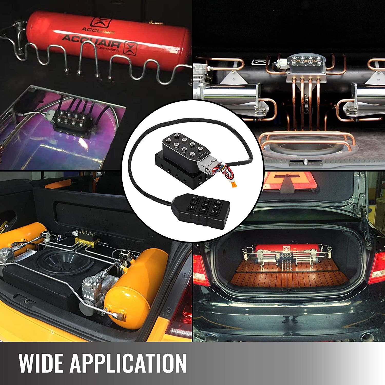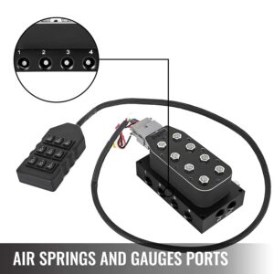 VEVOR Accu X4 Solenoid Valve 1/2in NPT Air Ride Manifold Solenoid Valve with 9-Switch Wired Remote Controller VXF4CM14B
