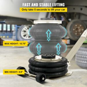 VEVOR Air Bag Jack 6600lbs Capacity Pneumatic Jack Quick Lift 3T, Heavy Duty, Car Repair Jacks and Floor Jacks, Folding Rod Fast Lifting, Triple Bag, with Two Wheels, Quick Car Lifting Jack, White