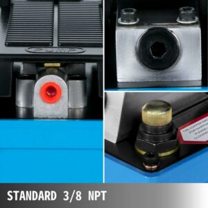 – STANDARD CONNECTOR TYPE – The pump features a 3/8″ NPT connector quick hydraulic coupler with dust cap and the cast steel oil port, which will not leak oil easily and is abrasion-resistant. Air Connection: 1/4″ Female NPT; Oil Capacity: 103 in³ (1.7 liters / 1700 cc), 0.45 gallons.