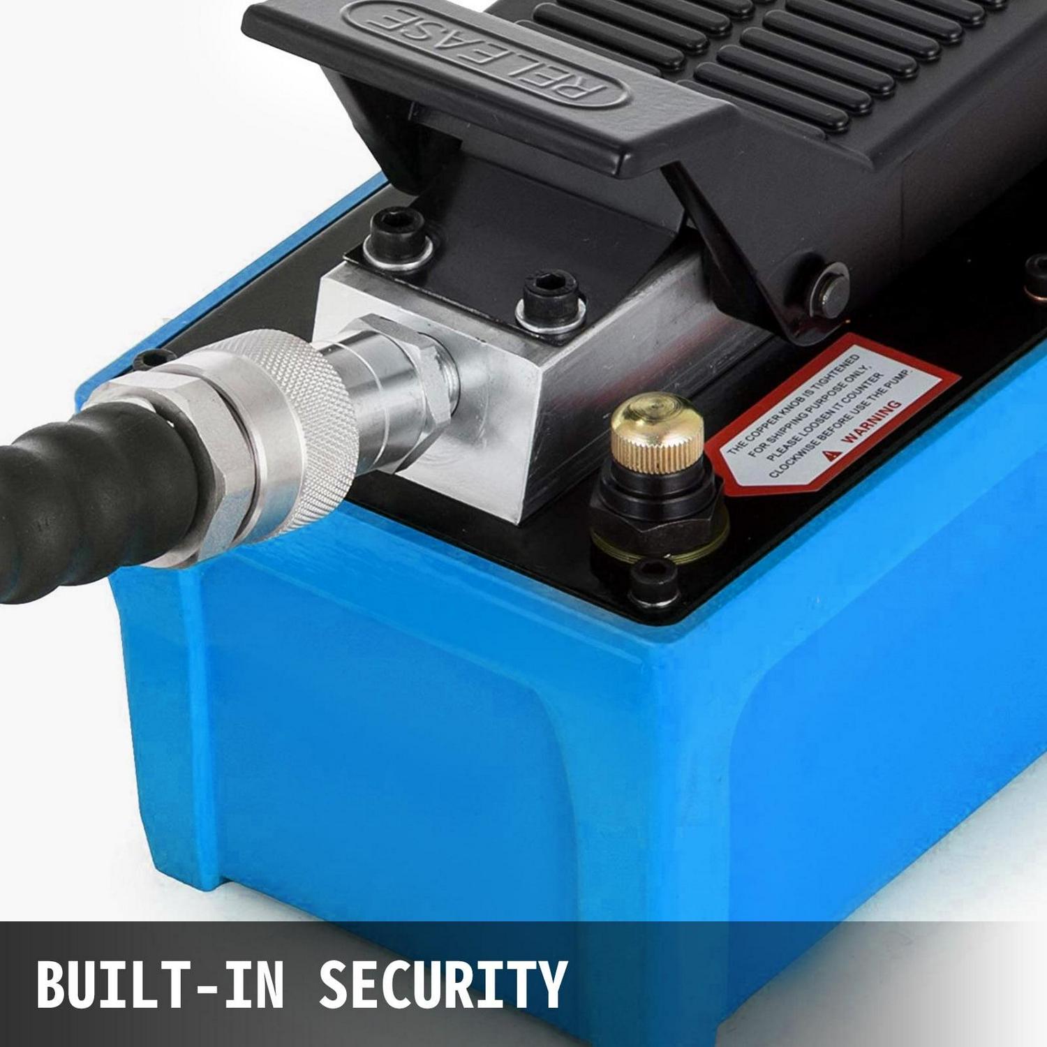 VEVOR Air Hydraulic Pump 10000 PSI Air Over Hydraulic Pump 1/2 Gal Reservoir Air Treadle Foot Actuated Hydraulic Pump 3/8 NPT with 6 FT Hose 2 Connector Single Acting for Car Repair (Blue)