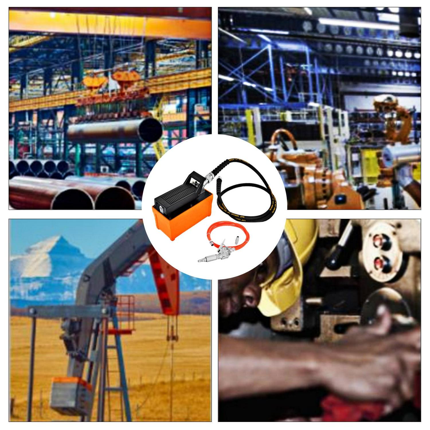 This air hydraulic foot pump is suitable for heavy machinery rigging and moving, auto repair, oil rigging, machine maintenance, etc.