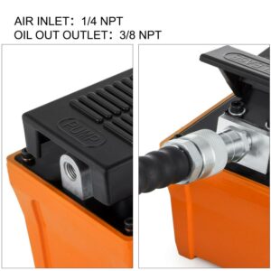 – PREMIUM QUALITY – The air hydraulic foot pump adopts a high-quality aviation aluminum alloy shell, good wear resistance, and corrosion-free. 1.6-1.7L oil tank has a larger capacity for more efficient operation.