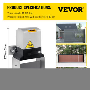VEVOR Automatic Sliding Gate Opener 1400 lbs with 2 Remote Controls, Gate Operator Hardware Kit for Security, Move Speed 43 ft Per Min, Electric Rolling Driveway Slide Gate Motor
