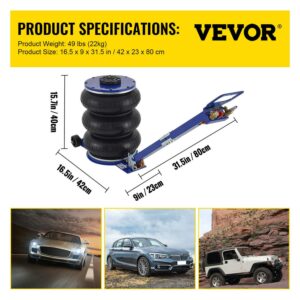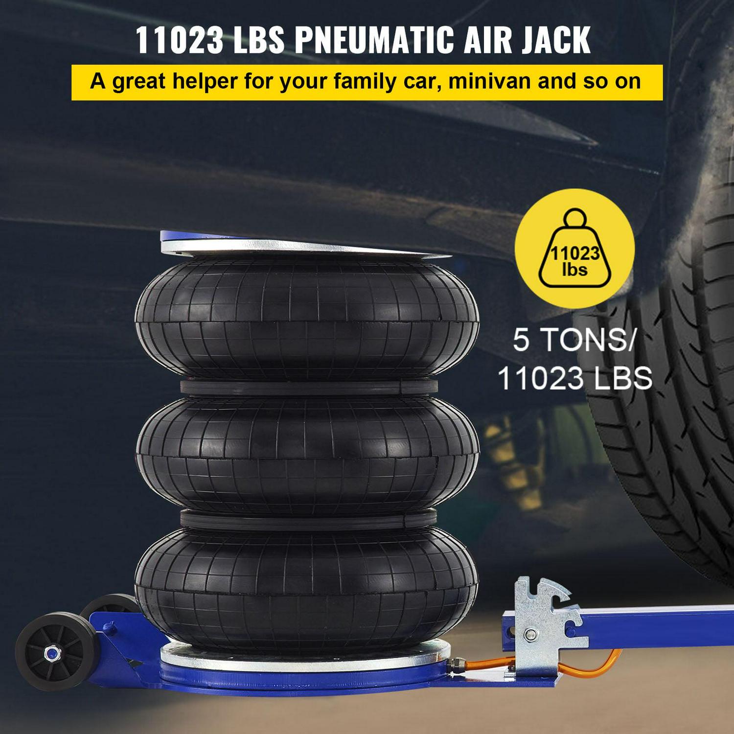 VEVOR Bag Air Jack 11000lbs Capacity Pneumatic Jack Quick Lift 5t, Heavy Duty, Car Repair Jacks and Floor Jacks, Folding Rod Fast Lifting, Triple Bag, with Two Wheels, Quick Car Lifting Jack, Blue