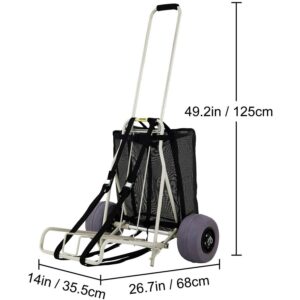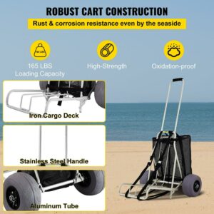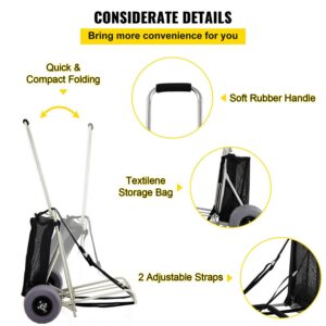 VEVOR Beach CartsA for the Sand, w/ 10 PVC Balloon Wheels, 165Lbs Loading Capacity Folding Sand Cart and 29.5” to 49.2” Adjustable Height, Heavy Duty Cart for Picnic, Fishing, Beach