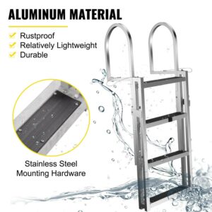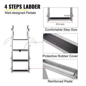 VEVOR Boat Ladder 4-Step with Rubber Mat, Aluminum Dock Ladder Adjustable Height w/Handrails, Heavy Duty Swim Pool Ladder 330lbs Capacity Fixed Dock Ladder Matte Finish