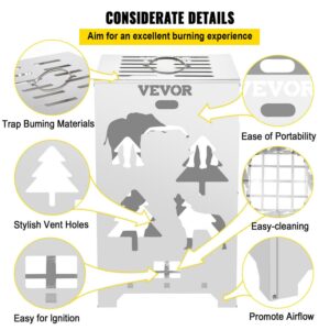 VEVOR Burn Barrel, 14x14x24 inch Burn Cage, Stainless Steel Cage Incinerator, Incinerator Barrel with Lid and Handle for Outdoors