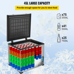 VEVOR Car Refrigerator, 48 Qt, 12v Portable Freezer with Single Zone, 12/24V DC and 110-240V AC Electric Compressor Cooler w/ -4a -68a Cooling Range, for Car Truck Vehicle RV Boat Outdoor and Home use
