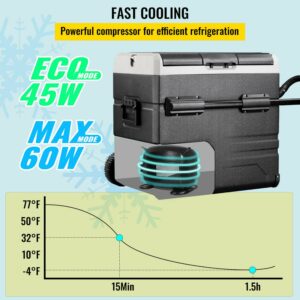 VEVOR Car Refrigerator 59Qt, Dual Zone Car Fridge Freezer -4a -68a with App Control and Wheels 12/24V DC and 110-240V AC Electric Compressor Cooler for Truck Vehicle RV Boat Outdoor and Home Use