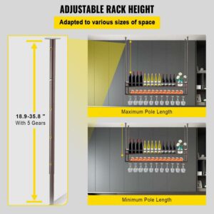VEVOR Ceiling Wine Glass Rack, 46.9 x 11.8 inch Hanging Wine Glass Rack, 18.9-35.8 inch Height Adjustable Hanging Wine Rack Cabinet, Coppery Wall-Mounted Wine Glass Rack Perfect for Bar Cafe Kitchen