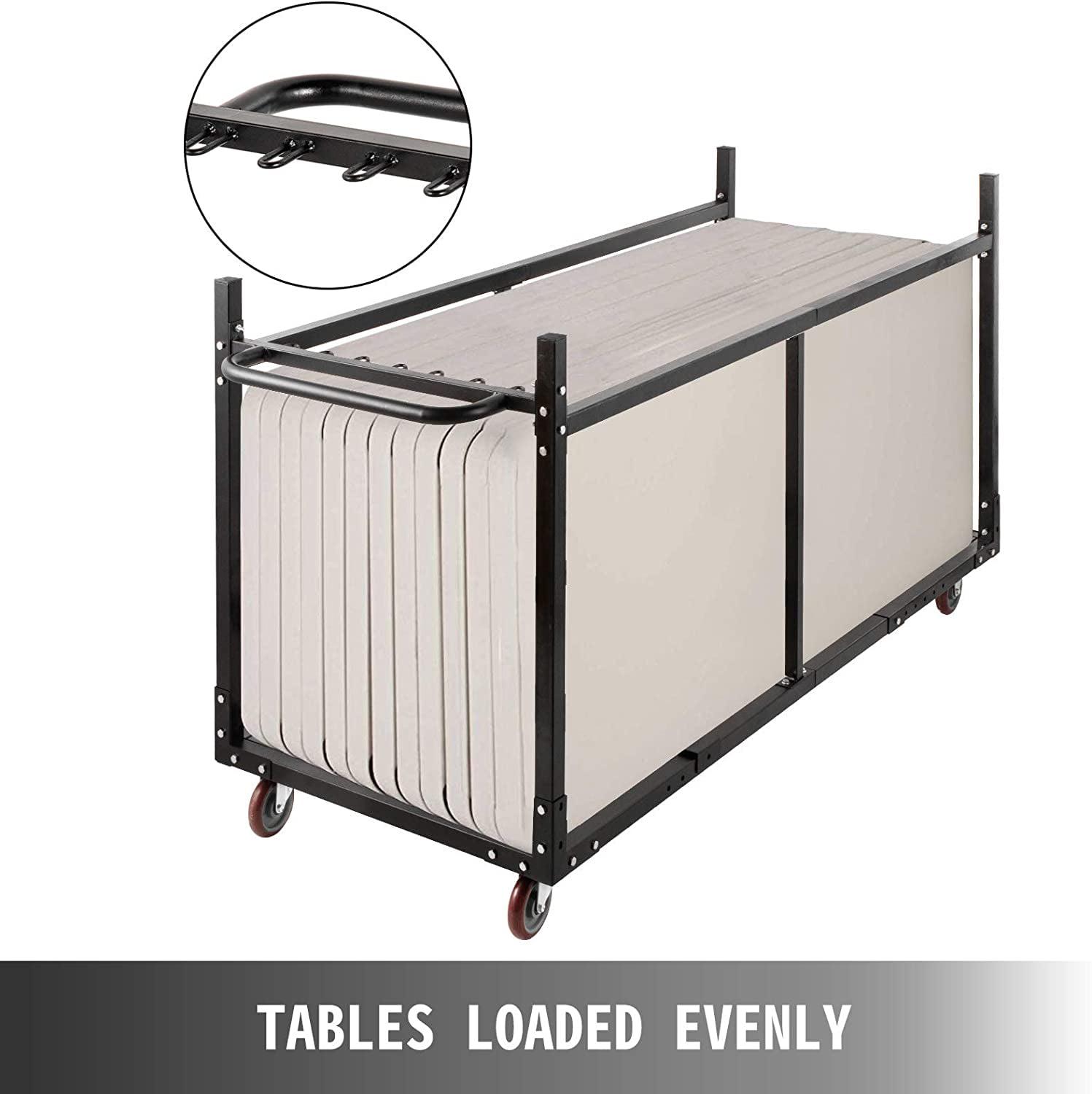 – HIGH LOAD CAPACITY – This versatile dolly accommodates up to (8) 72″ or 60″ round tables, or 12 rectangular tables up to 96″, making it a great choice for storing and transporting folding tables in a variety of applications.