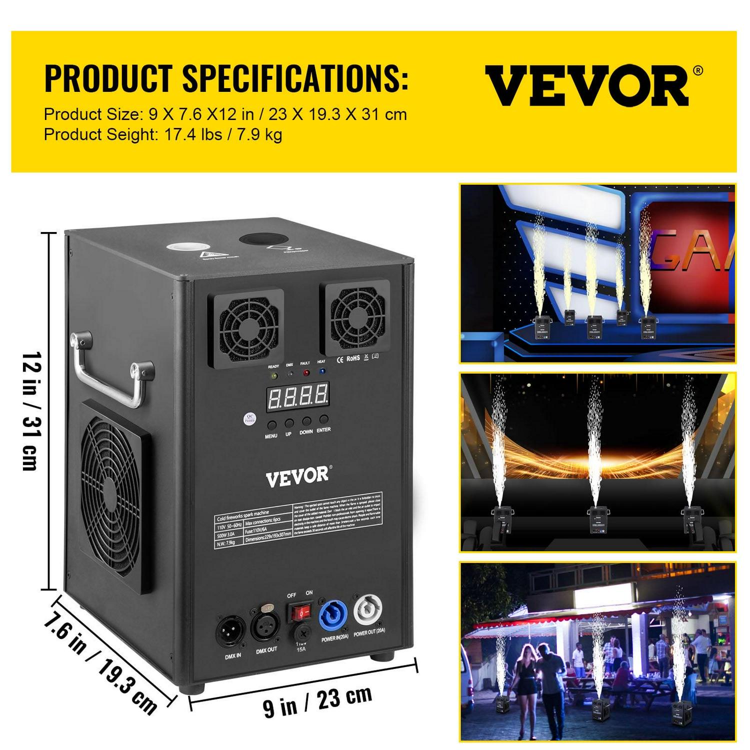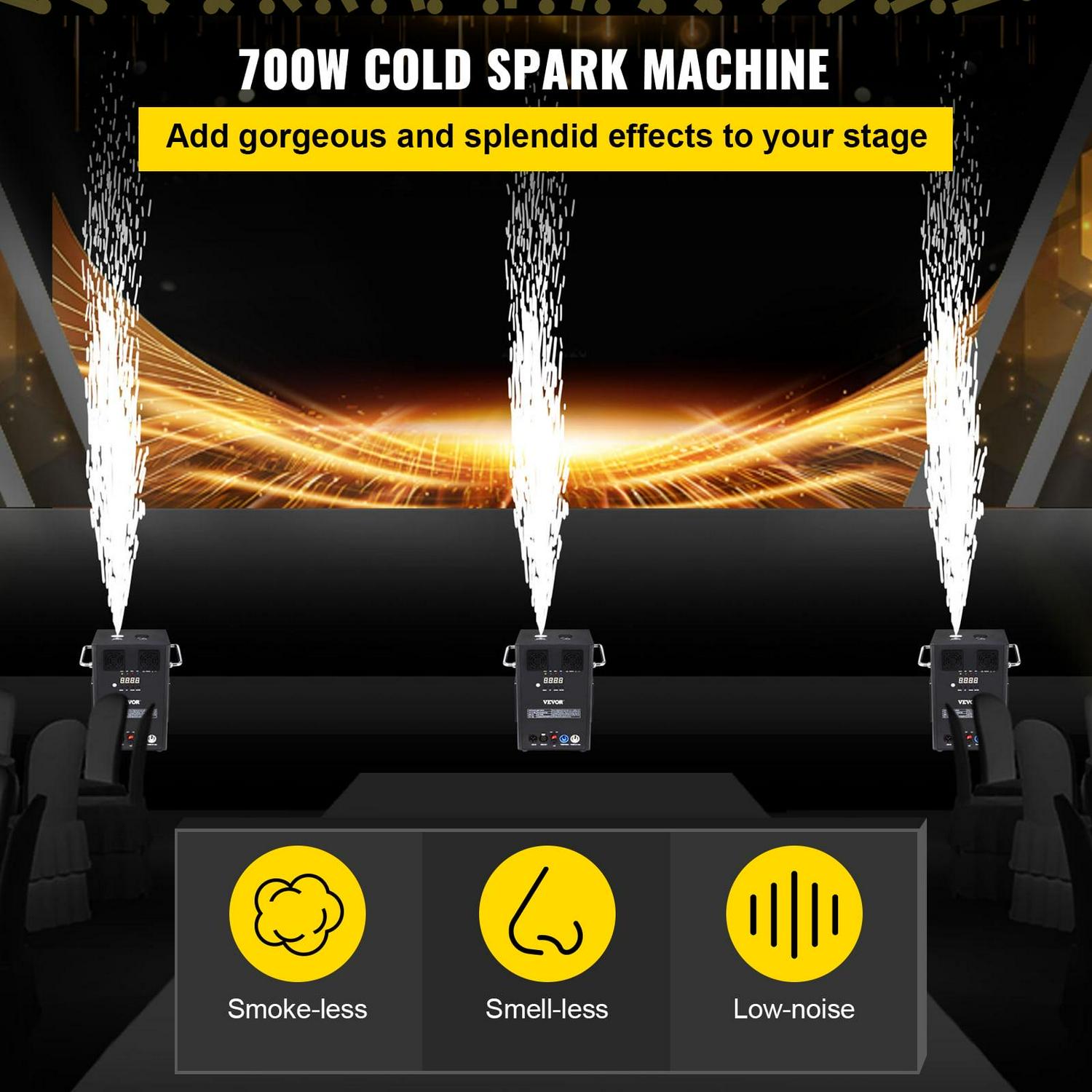 VEVOR Cold Spark Machine, Large 400W DMX indoor Firework Machine, Black Effect DMX Machine for Stage DJ Disco Big Show Wedding Party, Spark Height 1-5 m/3-16 ft