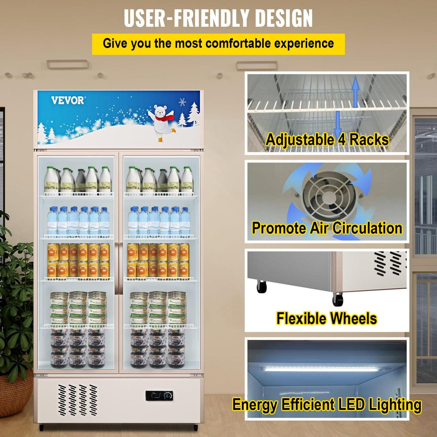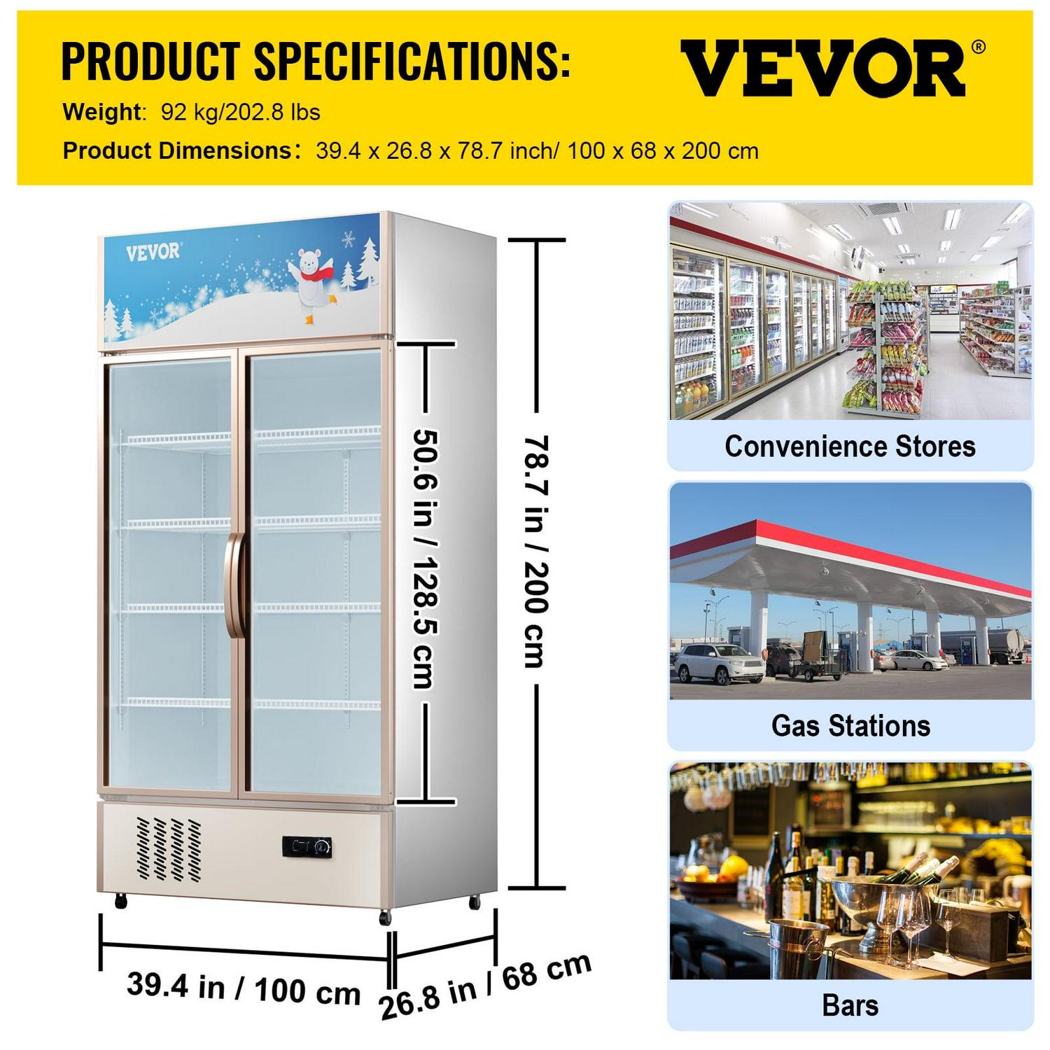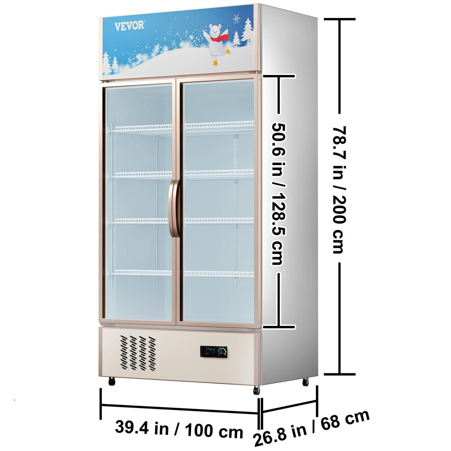 VEVOR Commercial Merchandiser Refrigerator, 2 Glass Doors, 20.3 Cubic Ft, Upright Display Beverage Cooler, 79 Tall x 39.4 Width, Fridge with LED Lighting for Drink Wine Soda, Gold