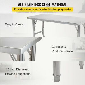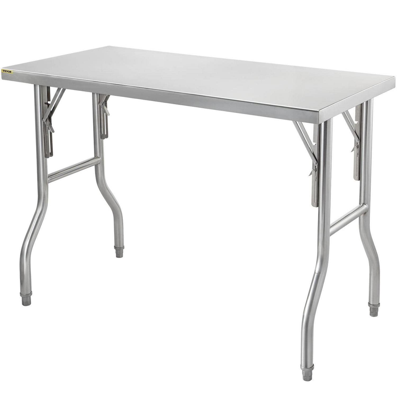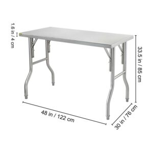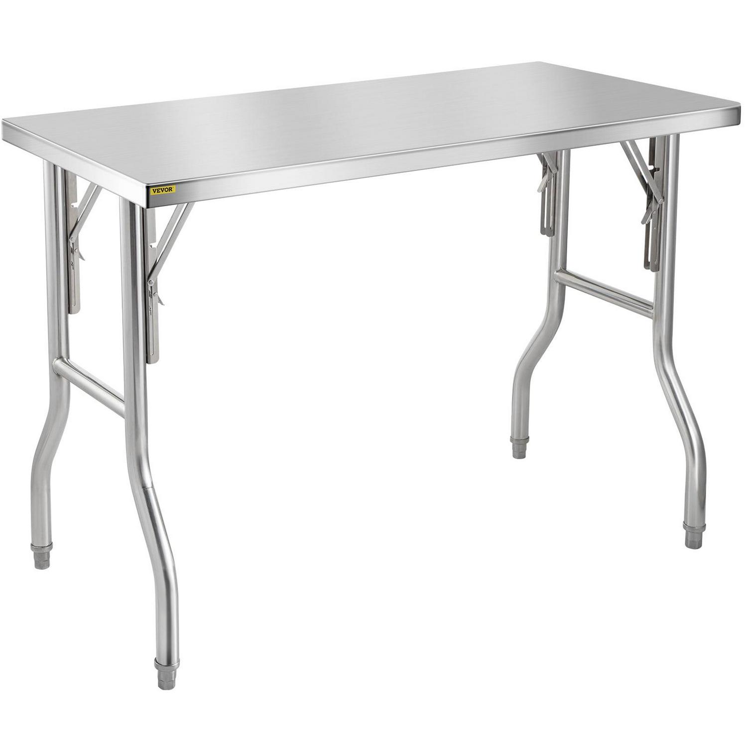 VEVOR Commercial Work Table Workstation 48 x 30 Inches Folding Commercial Prep Table, Heavy-Duty Stainless-Steel Folding Table with 661 lbs Load, Silver Stainless-Steel Kitchen Island