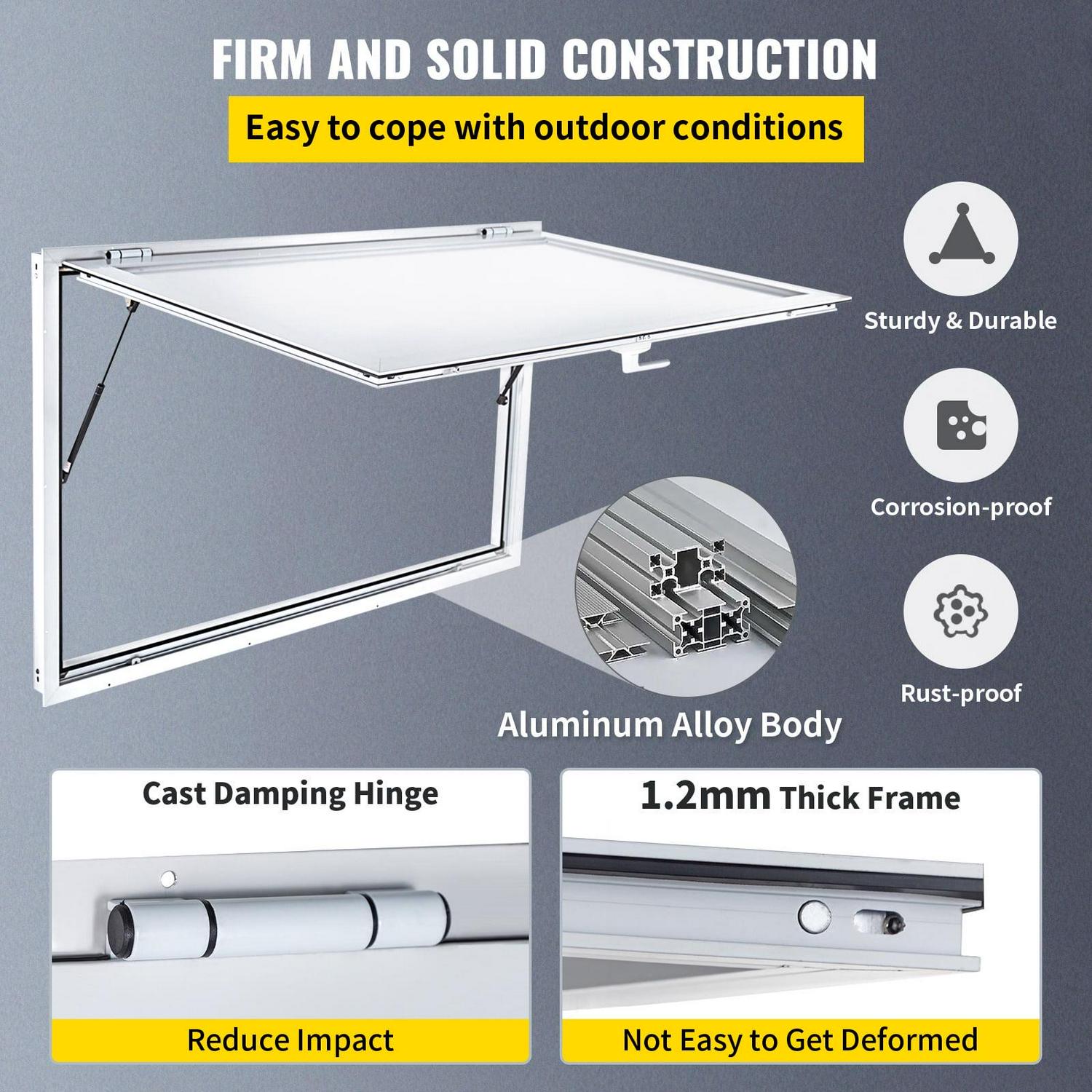– EFFORTLESS OPENING – Equipped with two pneumatic support arms, designed for a more convenient and more comfortable lift. Our concession window for trailer can keep the awning up to 85 degrees.