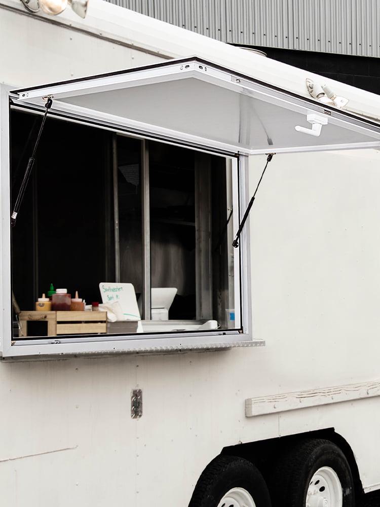 We offer you a high-quality concession window. Made of aluminum alloy, which increases durability and ensures corrosion resistance. Designed with two pneumatic support arms for effortless opening. With our concession stand window, you can serve your food to the customer easily even when it rains or when the sun is bearing down. Widely used in food trucks, concession stands, catering trucks, BBQ trailers, etc.