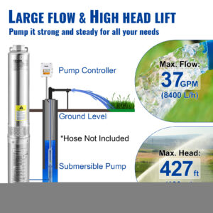 This 2 HP submersible well pump features a large 37GPM flow and 427 ft high head lift, meeting all your water needs. The multiple filtration mesh ensures crystal-clear water.