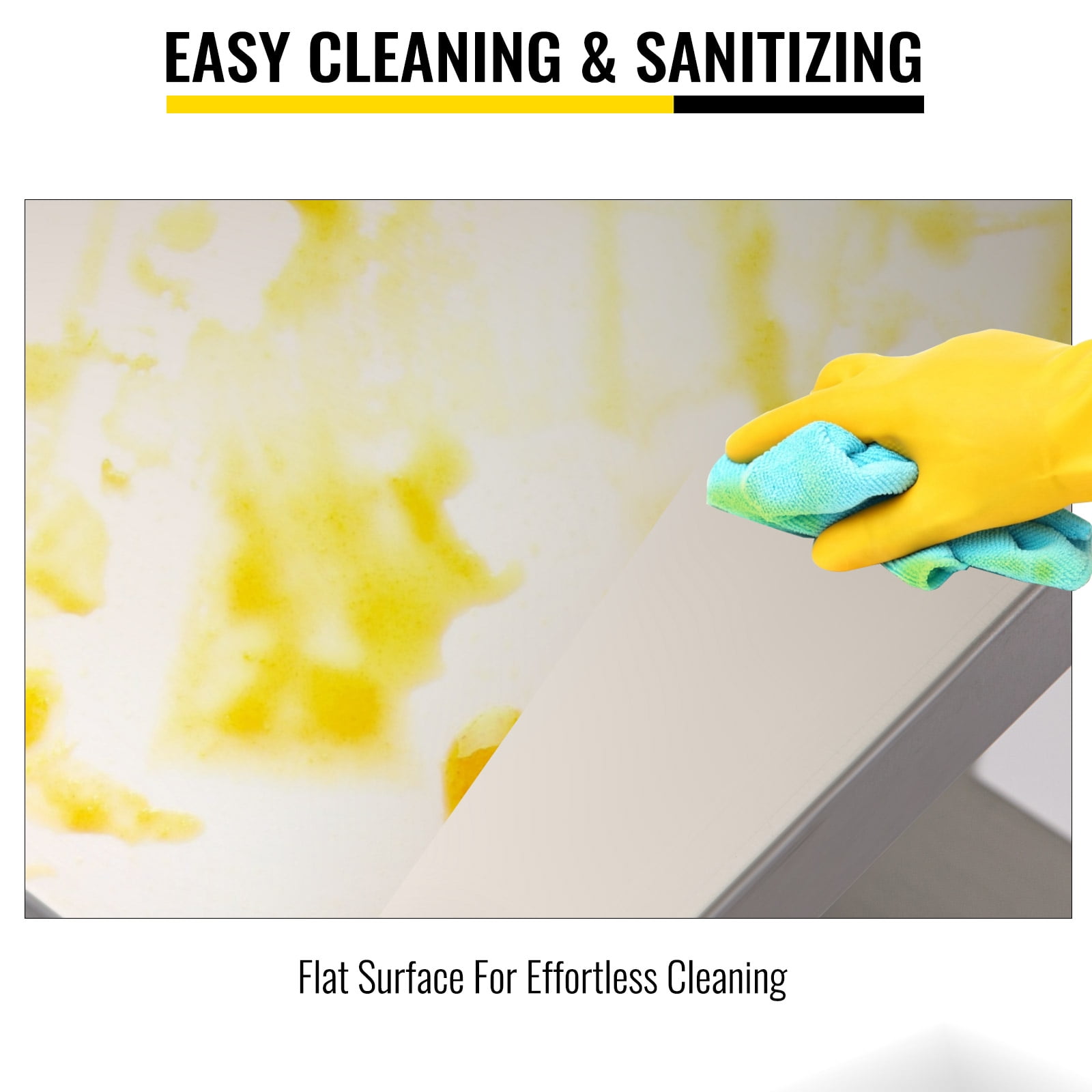 Brand Introduction VEVOR is a leading brand that specializes in equipment and tools. Along with thousands of motivated employees,VEVOR is dedicated to providing our customers with tough equipment & tools at incredibly low prices. Today, VEVOR has occupied markets of more than 200 countries with 10 million plus global members. Why Choose VEVOR? 1.Tough Quality Assurance 2.Incredibly Low Prices 3.Fast & Secure Delivery 4.30-Day Free Returns 5.24/7 Professional Customer Service Product Description 12×60-inch Double Overshelf for Prep & Work Table The 12″ x 60″ double overshelf, made of food-grade stainless steel, is perfect for home use and public places, Two shelves (the lower one is adjustable) can add extra storage space .the top shelf can hold 440.9 lbs and the lower 286.6 lbs. Installation tools and accessories are included in the package, and the stainless steel material is convenient for you to wipe the dirt off without causing damage to its surface. Durable & Stable Material Made of food-grade stainless steel, this hard-wearing double overshelf is a perfect fitting for the prep table in your kitchen, defending against corrosion and enduring long-time use. Besides, the triangular-designed support will enhance the stability & bearing capacity of the shelf. Easy Installation With the pre-drilled mounting holes, this double-deck overshelf features easy assembly. You can directly set it up with the installation tools that are included in the package, such as screws, nuts, brackets, spacers, etc. After that, it can be firmly mounted to your work table. Large Storage & High Load Taking advantage of the double-deck design, you will receive extra storage space to array your cooking items,The load-bearing of this double-tier overshelf also performs well – the top of which can support 440.9 lbs and the lower 286.6 lbs. Adjustable Lower Shelf One great advantage of this double overshelf is its flexibility. The lower shelf can be raised or lowered according to the actual size of the stuff you want to place on the work table and the shelves. The height of the lower shelf is 9.45″, and it can be adjusted from 7.48″ to 11.42″. Easy Cleaning & Sanitizing Since food-grade stainless steel is adopted as the material, smooth and rust & wear-resistant, there would be no trouble cleaning maintaining and cleaning. And it would be effortless for you to wipe the grease and dirt off the surface of the overshelf with a rag and kitchen cleaner. Perfect For Diverse Scenes Apart from being used at home as a fitting for a prep table or design table, this double overshelf is also practical for commercial or industrial settings. It is ideal for being utilized in factories, workshops, storerooms, restaurants, cafeterias, bakeries, etc. Specifications Model: VV-SR-S-1260 Material: Stainless Steel Color: Silver Dimensions: 59.84″x11.81″x23.62″ (1520x300x600 mm) Height of Top Shelf: 8.86″ (225 mm) Height of Lower Shelf: 11.02″ (280 mm) Thickness: 0.05″ (1.3 mm) PackageContent 1 x Double Overshelf 13 x Screws 8 x Steel Plates 5 x Flat Head Screws 2 x Brackets 9 x Spacers 1 x Wrench 12 x Nuts 1 x User Manual