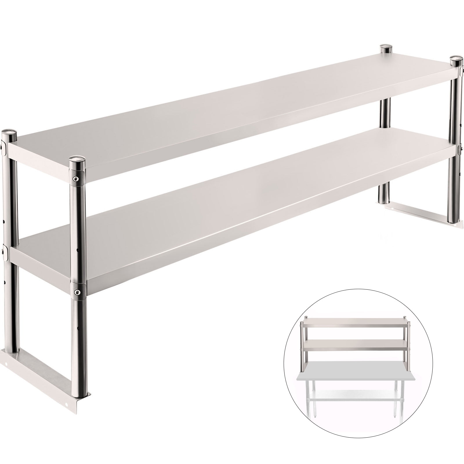 VEVOR Double Overshelf, Double Tier Stainless Steel Overshelf, 60 in.Length x 12 in.Width Double Deck Overshelf, Height Adjustable Overshelf for Prep & Work Table in Kitchen, Restaurant and Workshop