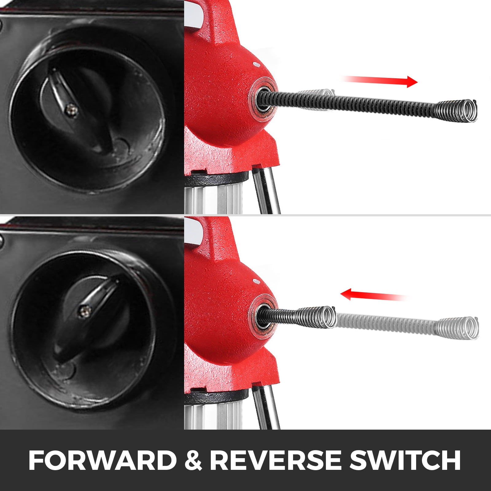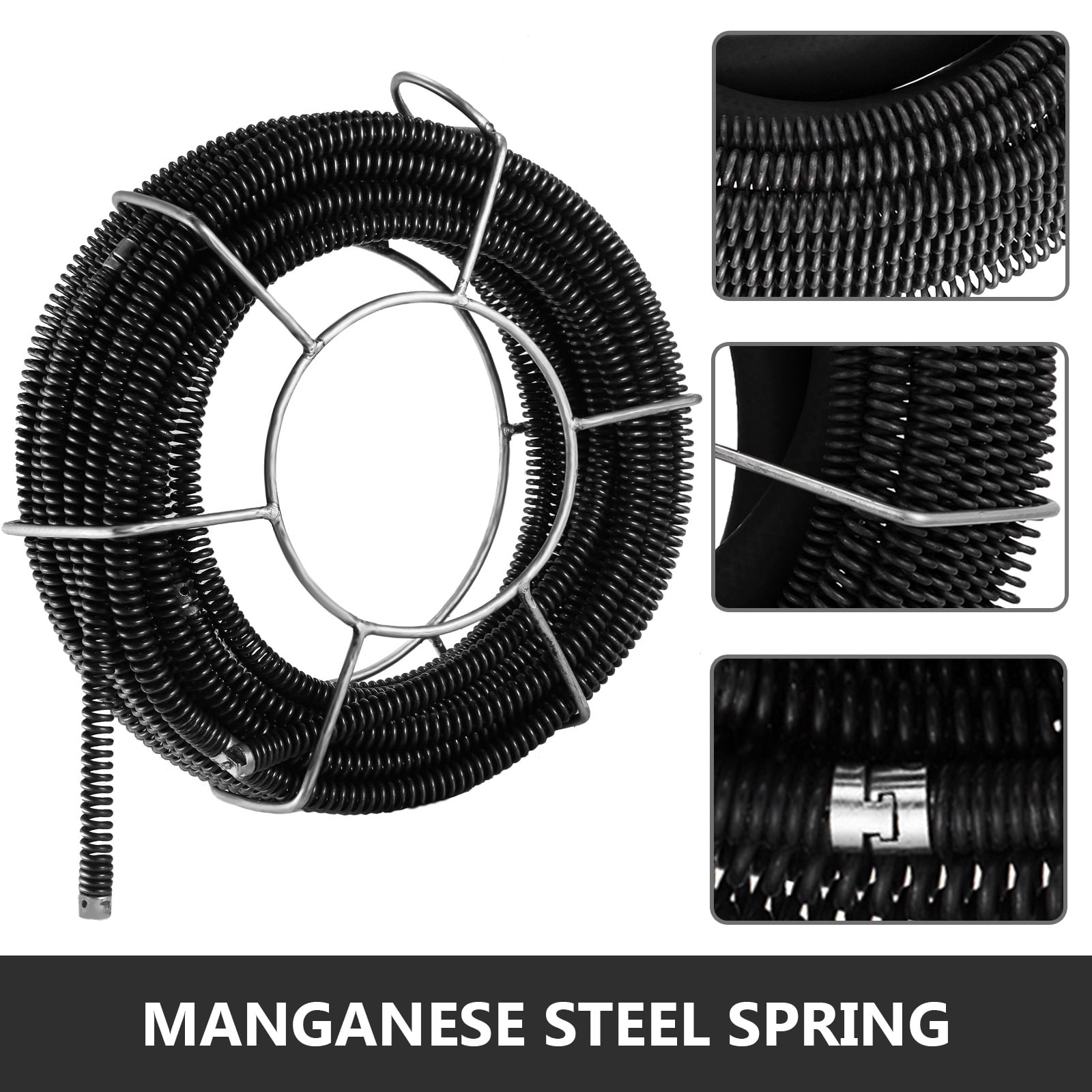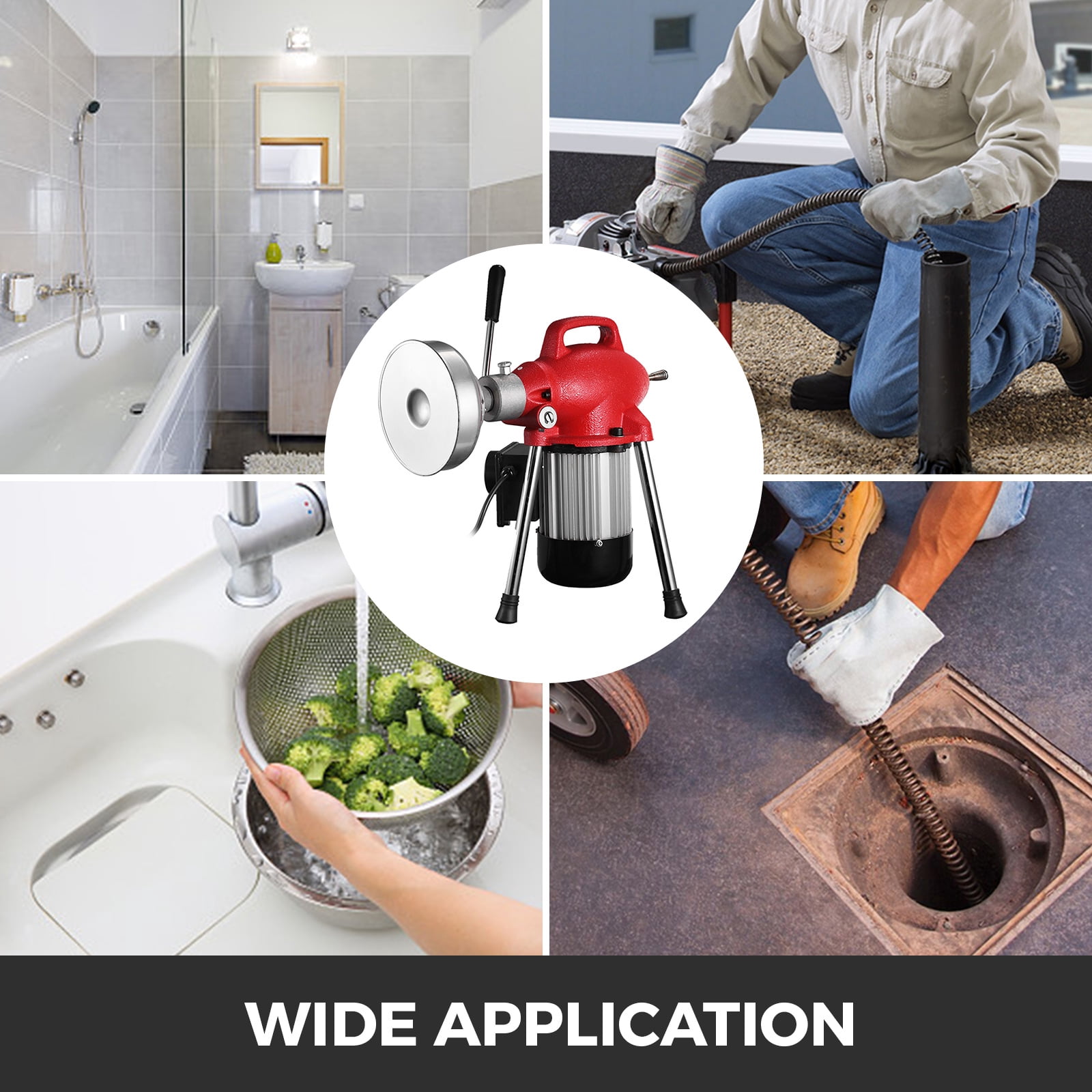Brand Introduction VEVOR is a leading brand that specializes in equipment and tools. Along with thousands of motivated employees,VEVOR is dedicated to providing our customers with tough equipment & tools at incredibly low prices. Today, VEVOR has occupied markets of more than 200 countries with 10 million plus global members. Why Choose VEVOR? 1.Tough Quality Assurance 2.Incredibly Low Prices 3.Fast & Secure Delivery 4.30-Day Free Returns 5.24/7 Professional Customer Service Product Description 500W Electric Drain Cleaner Professional electric sewage drain pipe cleaner is made of metal steel (applicable for cleaning blocked pipelines of sizediameter from 3/4”-4” and drive up to 100FT of cable, it can use 3/8” cable and 5/8” cable, includes 8 cutting tool bits, and 20m (which each cable come with one male + one female connector) of 5/8” cable. Metal Shell The outer casing is made of quality material, it is not easy to break. Protecting the inner parts well. Forward & Reverse Switch Plastic silver melt contact switch. By switching to the left side or the right side, you may find it simple to realize the change of direction. Pure Copper Wire Motor Copper wire motor has better conductivity and low resistance, so it is not easy to burn and high speed operation efficiency is offered. Manganese Steel Spring Made of manganese steel, durable and resistant to rust, excellent toughness, high strength, fast corrosion resistance, and suitable for cornering. Thickened Handle With a portable handle, sturdy and durable, easy to move, easy to use, you don’t have to be panting when working with the machine. Wide Application Applicable for toilet, wash basin, floor drain, kitchen, bathroom, floor sewer. You can use it in your home, kitchen, bathroom and even your office area. Specifications Power: 500W Speed: 400 R.P.M. Motor Data: AC 110V 50/60HZ Forward/Revers Pipe Size: 3/4″ – 4″ / 20 – 100 mm Diameter Cable (Snake) Size: 16.4′ x 3/8″ / 5 x 10 mm Cable (Snake) set1: 66′ x 3/5″ / 20 x 16 mm Cable (Snake) set2: 8.2′ x 3/5″ / 2.5 x 16 mm Protection class: IP44 CE standard Packing size: 46x41x47cm Shipping weight: 39kgs Package Content 1X Drain Pipe Cleaner 1X Cable holder 1X 66’(20m) x 16mm Cable 1X 8.2’(2.5m)x 16mm Cable 8X Cutting tool bits