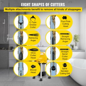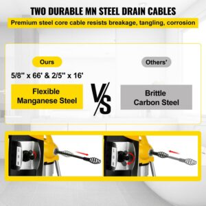 VEVOR Drain Cleaning Machine 66 ft x 2/3 inch, Electric Cleaner Machine fit 3/4 inch to 5 inch Pipes 500W Electric Drain Auger Portable with 4 Cutters Drain Cleaning Machine Plumbing Too
