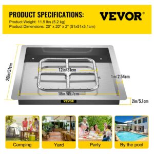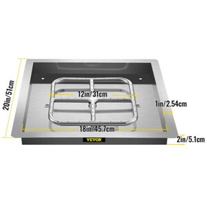 VEVOR Drop in Fire Pit Pan, 18 x 18 Square Fire Pit Burner, Stainless Steel Gas Fire Pan, Fire Pit Burner Pan with 1 Pack Volcanic Rock Fire Pit Insert with 90K BTU for Keeping Warm