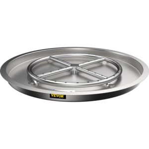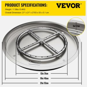 VEVOR Drop in Fire Pit Pan, 19 x 19 Round Fire Pit Burner, Stainless Steel Gas Fire Pan, Fire Pit Burner Pan with 1 Pack Volcanic Rock Fire Pit Insert with 90K BTU for Keeping Warm