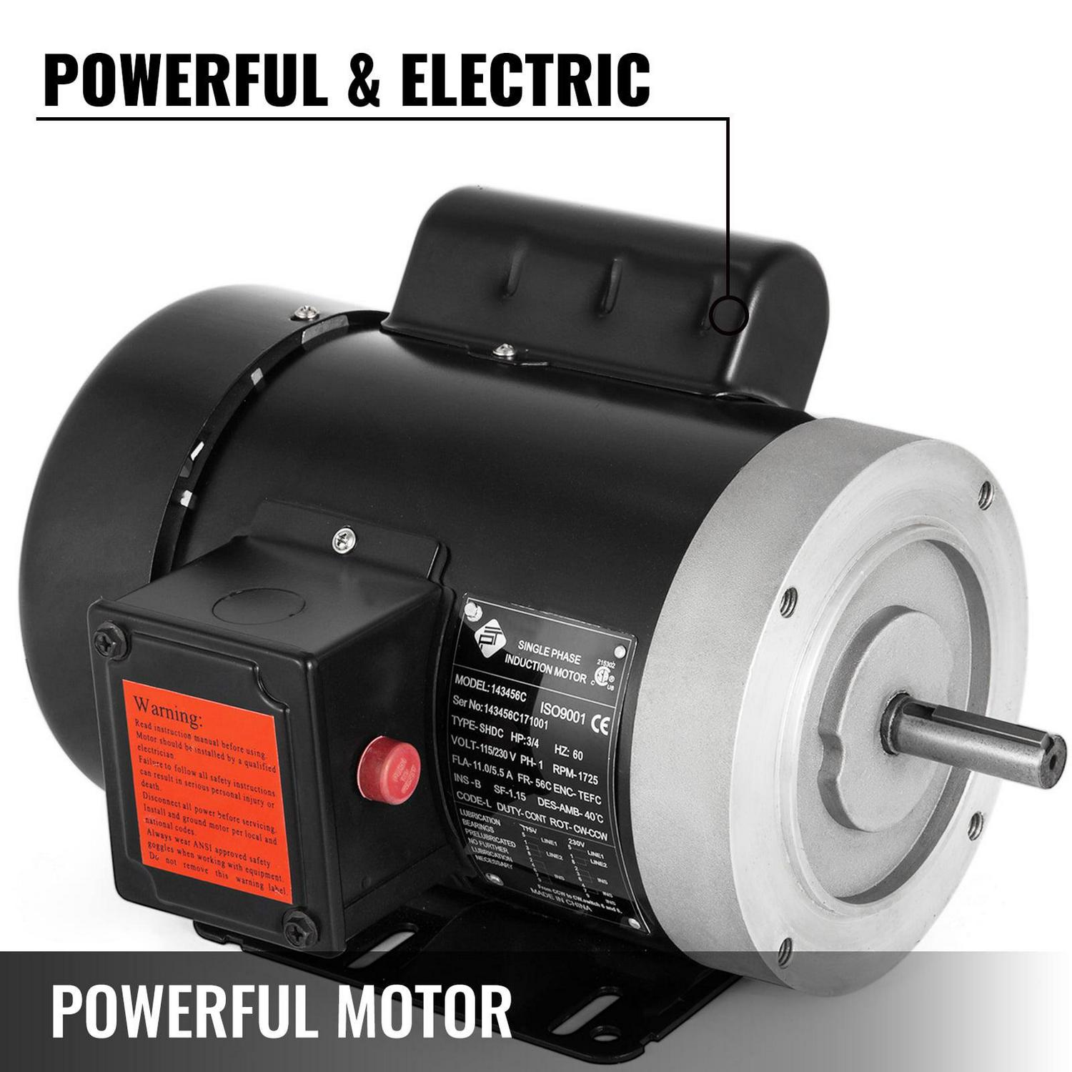 VEVOR Electric AC Motor, 1725rpm 3/4HP Single Phase 56C Frame Air Compressor Motor Reversible 5/8 Shaft Diameter Electric Motor for Air Compressor General Equipment, 115/230VAC