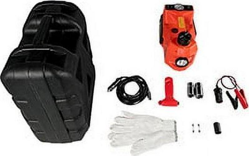– COMPLETE ACCESSORY KIT – Including car electric jack; safety hammer; plastic case; 3.5m power cable; Battery Clamp with Wire; Fuse ; Inflate Head ; Hex Key;Inflate Needle; Pair of Gloves; User Manual. Very portable and easy to use.