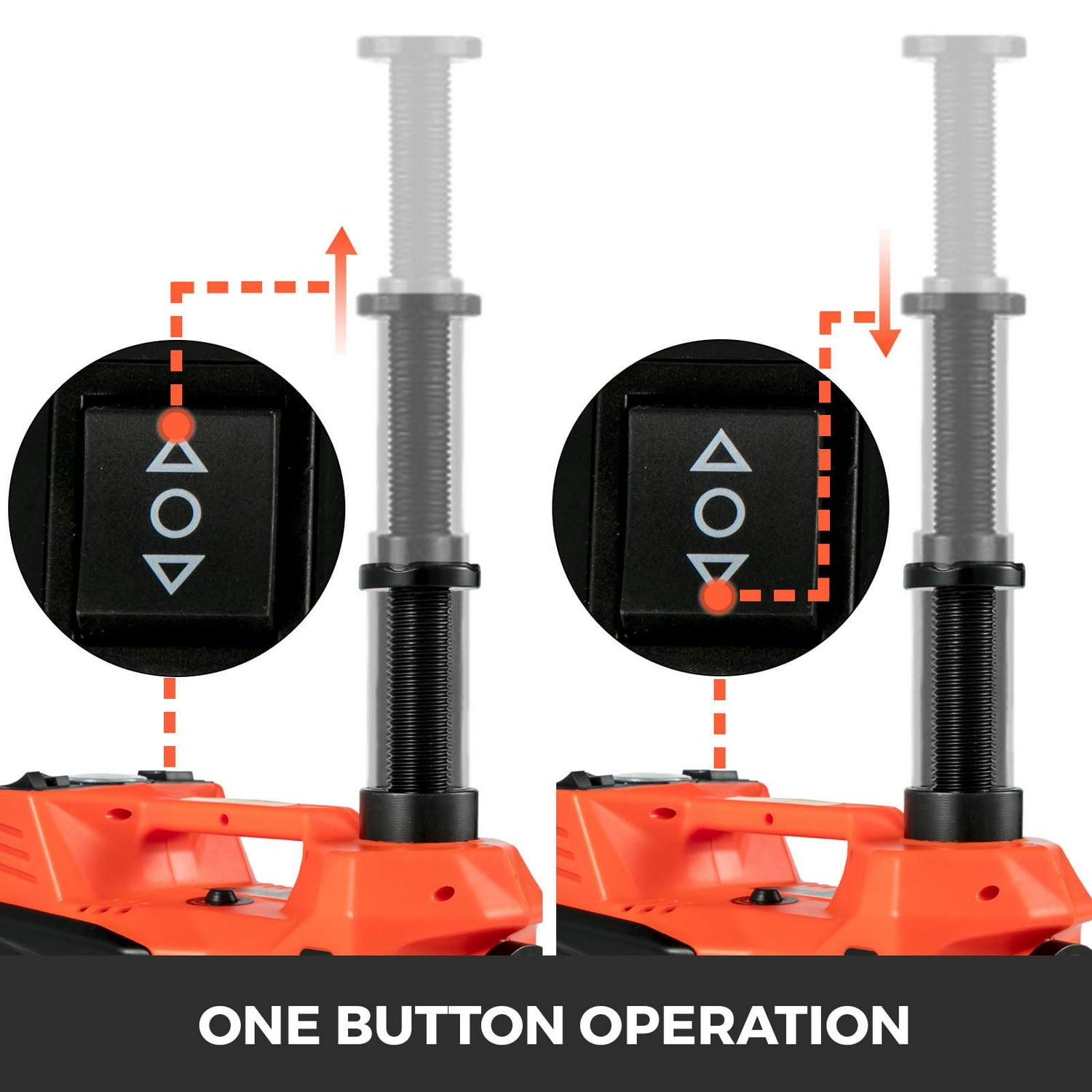 – JACK CAPACITY-5.0T/11023LB – Working Capacity can reach up to 5.0T(11023lb)as a jack. With 12V vehicle power outlet, low pressure rod, set for the sports car. Equipped with double motor driver inside, it works independently and effectively.