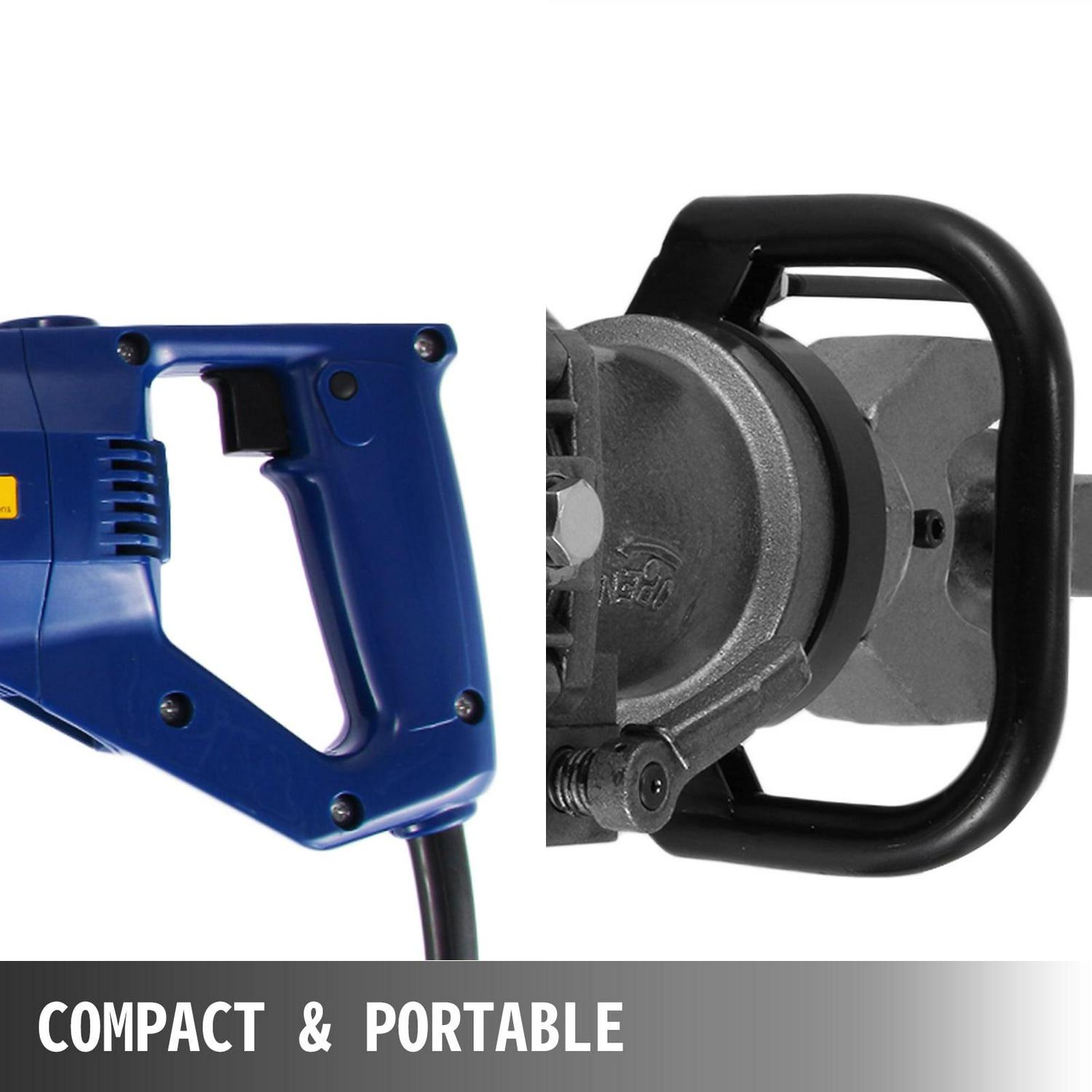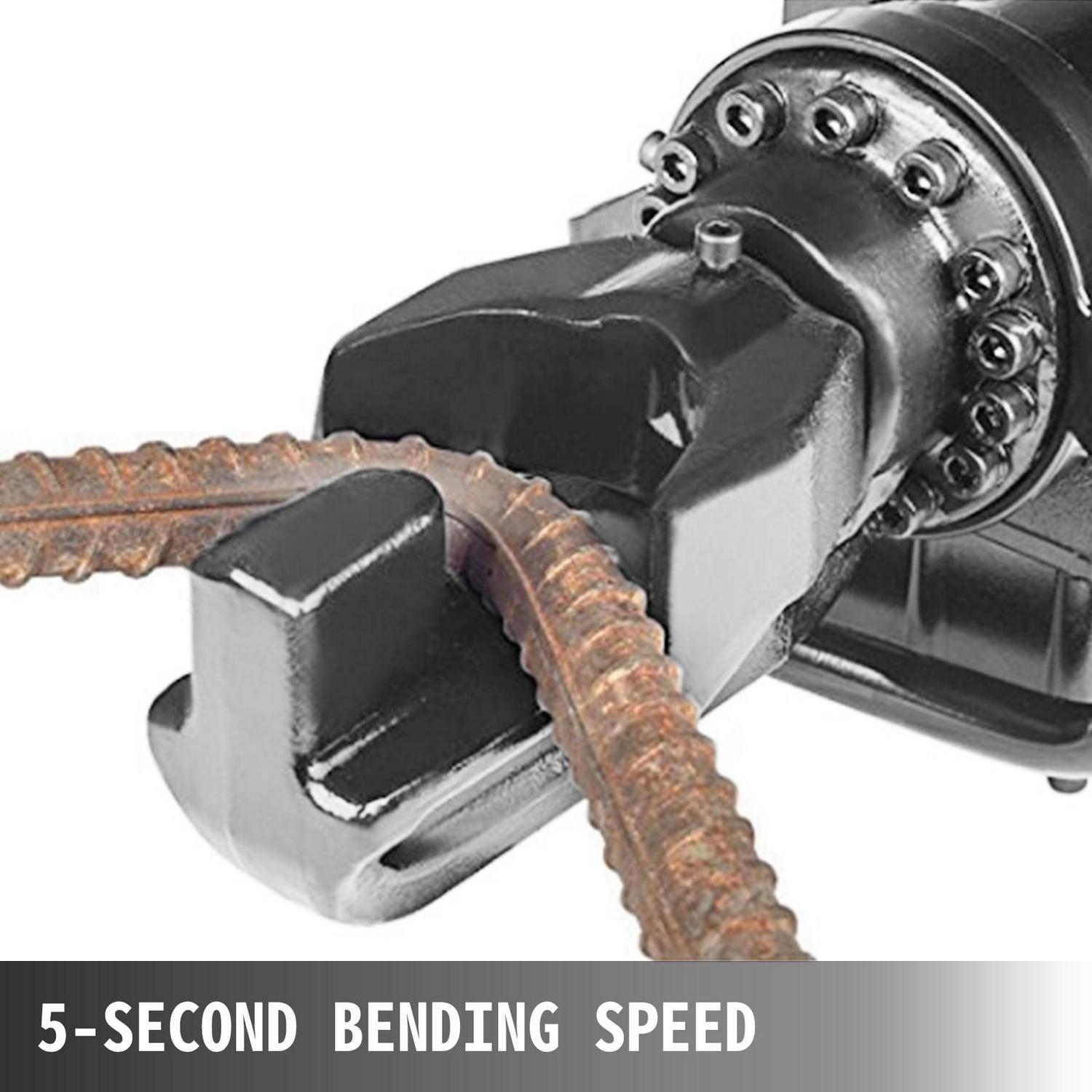 Brand Introduction VEVOR is a leading brand that specializes in equipment and tools. Along with thousands of motivated employees,VEVOR is dedicated to providing our customers with tough equipment & tools at incredibly low prices. Today, VEVOR has occupied markets of more than 200 countries with 10 million plus global members.Why Choose VEVOR 1.Tough Quality Assurance 2.Incredibly Low Prices 3.Fast & Secure Delivery 4.30-Day Free Returns 5.24/7 Professional Customer Service Product Description 800 Watts #5 Electric Rebar Steel Bender This portable rebar bender can save person-hours by offering excellent performance, bending rebar to 130 degrees within only 5 seconds, super ideal for builders, contractors and manufacturers who require a simple to use, consistently accurate rebar bending machine onsite or in the shop. Pure Copper Motor A pure copper motor is more durable, and with low noise when working. 5-Second Bending Speed It can bend up to 130 degree within 5 seconds, ultra-fast. Sturdy & Durable Head Its sturdy head could clamp super-hard rebar tightly, reducing the waste of rebar. Adjustable Positioning Bolt With this positioning bolt, you can bend any angle within 0-130 degrees, super convenient. Compact & Portable With handles on the front and back, it is easy to carry and operate. Wide Application Ideal for builders, contractors, manufacturers who require a simple to use, consistently accurate rebar bending machine. Specifications Wattage: 800 W Bending angle: 0°-130° Bending speed: 5 s Voltage: 110 V 60 Hz Max.rebar diameter: 16 mm ( 5/8″) Min.rebar diameter: 4 mm Max.rebar hardness: Tensile strength 650 N/mm² Net size: 585 x 195 x 205 mm (22″x 7.6″x 8″) Packing size: 670 x 250 x 240 mm(26″x 9.8″x 9.4″) Weight: 15 kg (33 lbs ) Package Content 1 X Rebar steel bender 1 X Wrench 2 X Spanners 1 X English manual 1 X Certificate