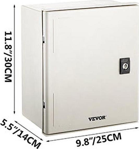 VEVOR Fiberglass Enclosure 11.8 x 9.8 x 5.5 Electrical Enclosure Box NEMA 3X Electronic Equipment Enclosure Box IP65 Weatherproof Wall-Mounted Electrical Enclosure With Hinges and Quarter-Turn Latches