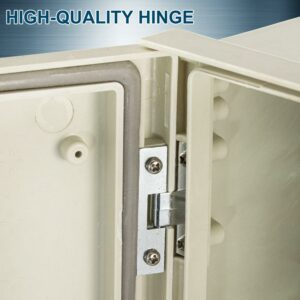 – REINFORCED LOCK & HINGE – The electronic equipment enclosure box features a high-quality lock core with a reliable precision structure that is not easy to fall off. The lockable door features reinforced hinges and dual quarter-turn latches to secure the fiberglass electrical enclosure.