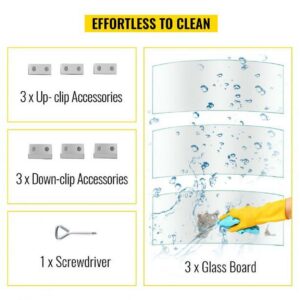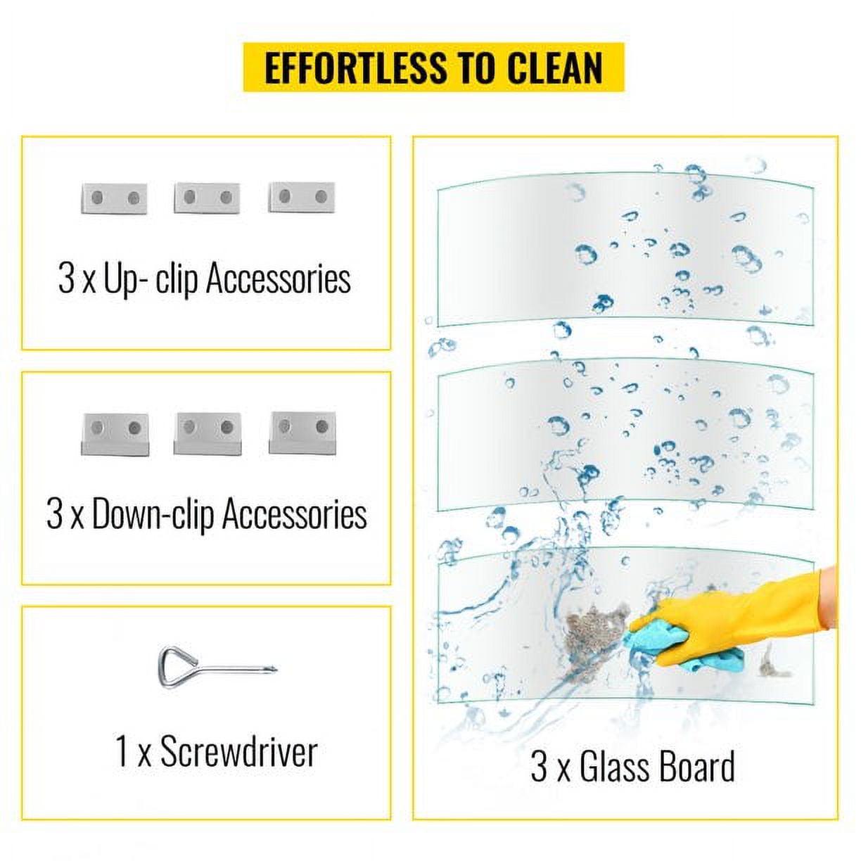 – CONSIDERATE DESIGN – Come with non-slip aluminum alloy feet to sit perfectly on top of your fire pit; this fire table glass can remain steady. The 0.4 inch/10 mm feet elevate the wind guard to ensure smooth air flows. Glass flame screen includes 3 pieces of glasses, up-clip accessories, and down-clip accessories; all parts are effortless to clean with warm soapy water.