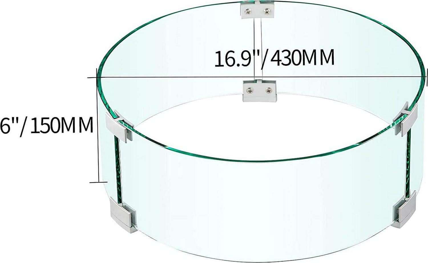 Tempered clear glass wind guard fence is designed to be compatible with the round fire tables smaller than 16.9 x 16.9 x 6 inches. This fire pit screen is perfect for round, rectangular, and square outdoor fire pits.