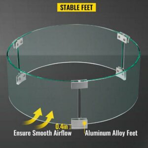 VEVOR Fire Pit Wind Guard, 17 x 17 x 6 inch Glass Flame Guard, Round Glass Shield, 1/4-Inch Thick Fire Table, Clear Tempered Glass Flame Guard, Steady Feet Tree Pit Guard for Propane, Gas, Outdoor