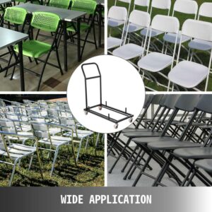 VEVOR Folding Chair Dolly for Folding Chairs 2 Swivel Casters with Brakes& 2 Fixed Straight Casters L-Shaped Steel Folding Chair Storage Cart Commercial and Home Kitchen Folding Chair Racks