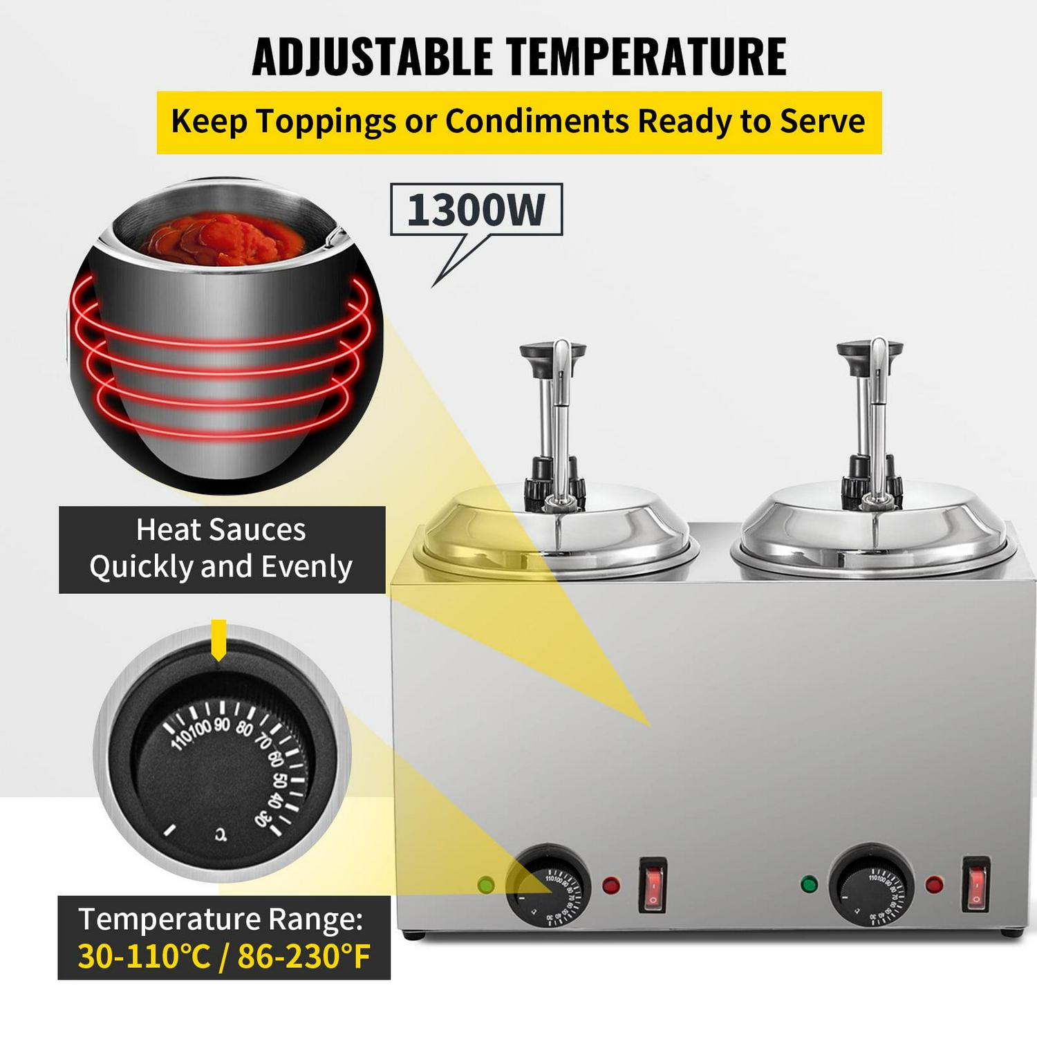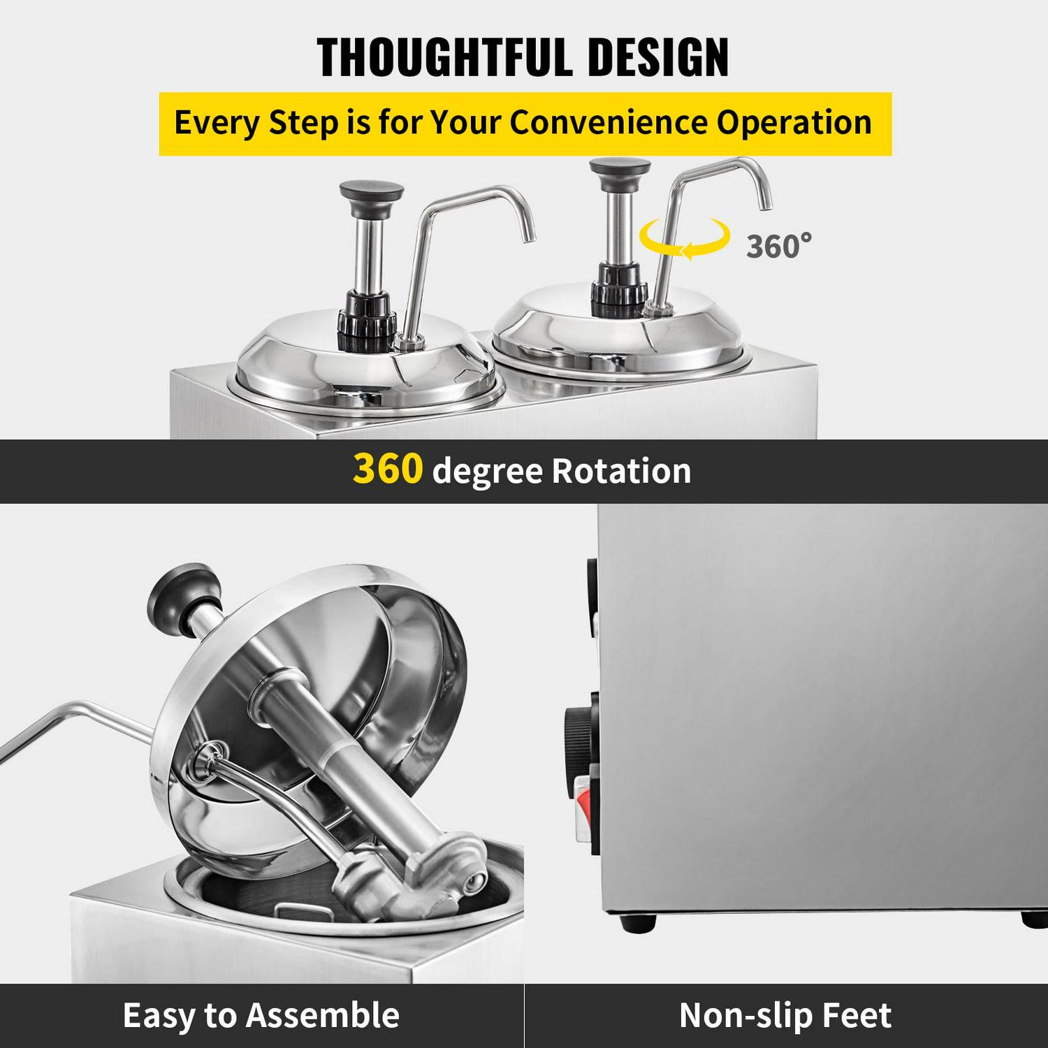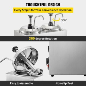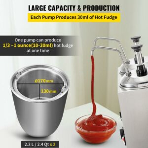 VEVOR Fudge Warmer Hot Cheese Pump with 2 Pumps Nacho Cheese Warmer Stainless Steel
