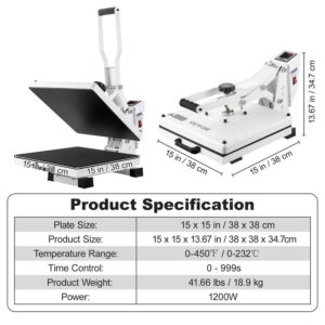 VEVOR Heat Press Machine, 15 x15 Swing Away T Shirt Pressing Machine Multifunction, High Pressure Heat Press Machine, Power Digital Industrial Sublimation Printer for Heat Transfer Viny