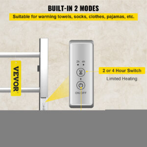 – Smart 2 Modes Time Control: This heated towel bar has a built-in timer with 2 modes: Choose 2 or 4 hours limited heating mode for fitting different types of clothes; choose unlimited heating with the ON/OFF button. Hence, there is no need to focus on the heating status for self-control, saving your time and energy.