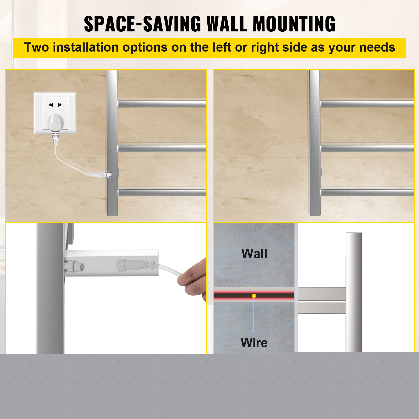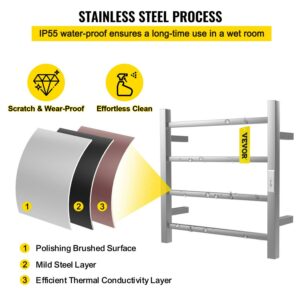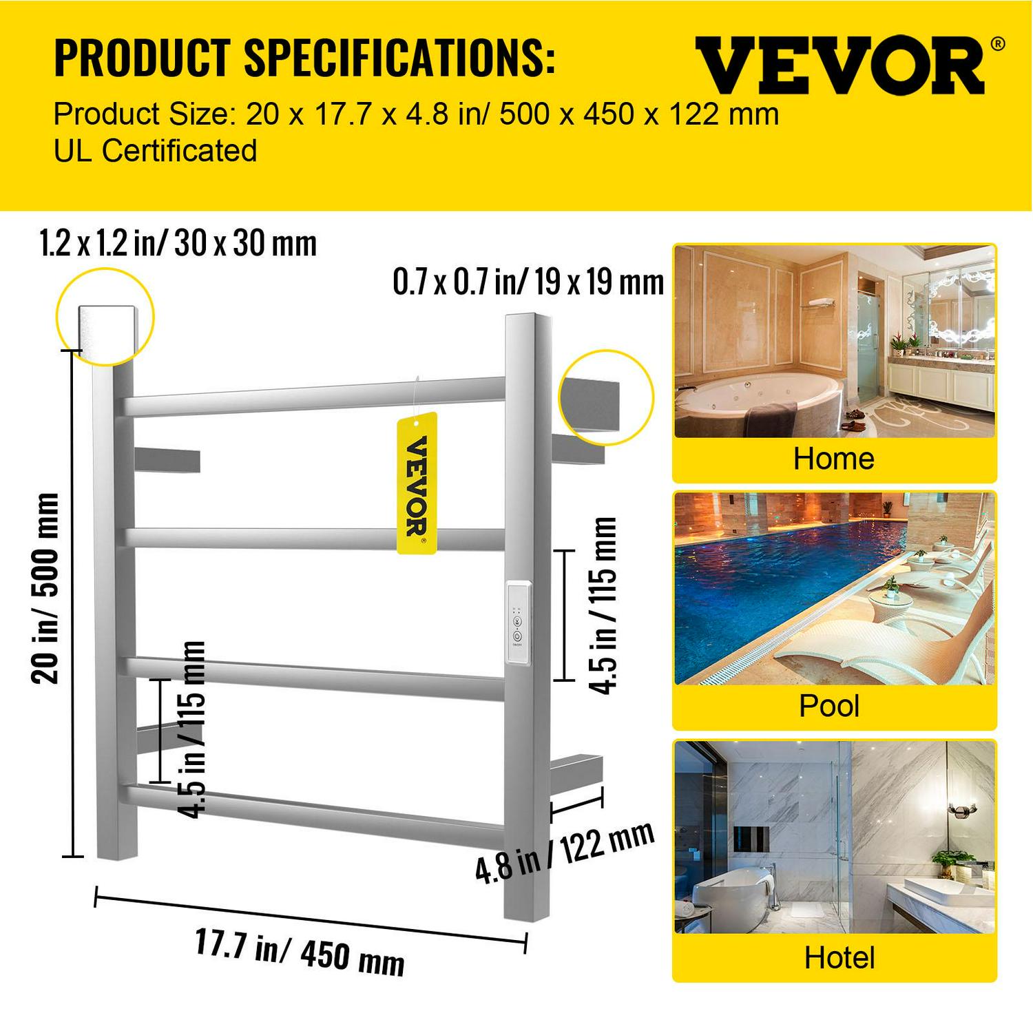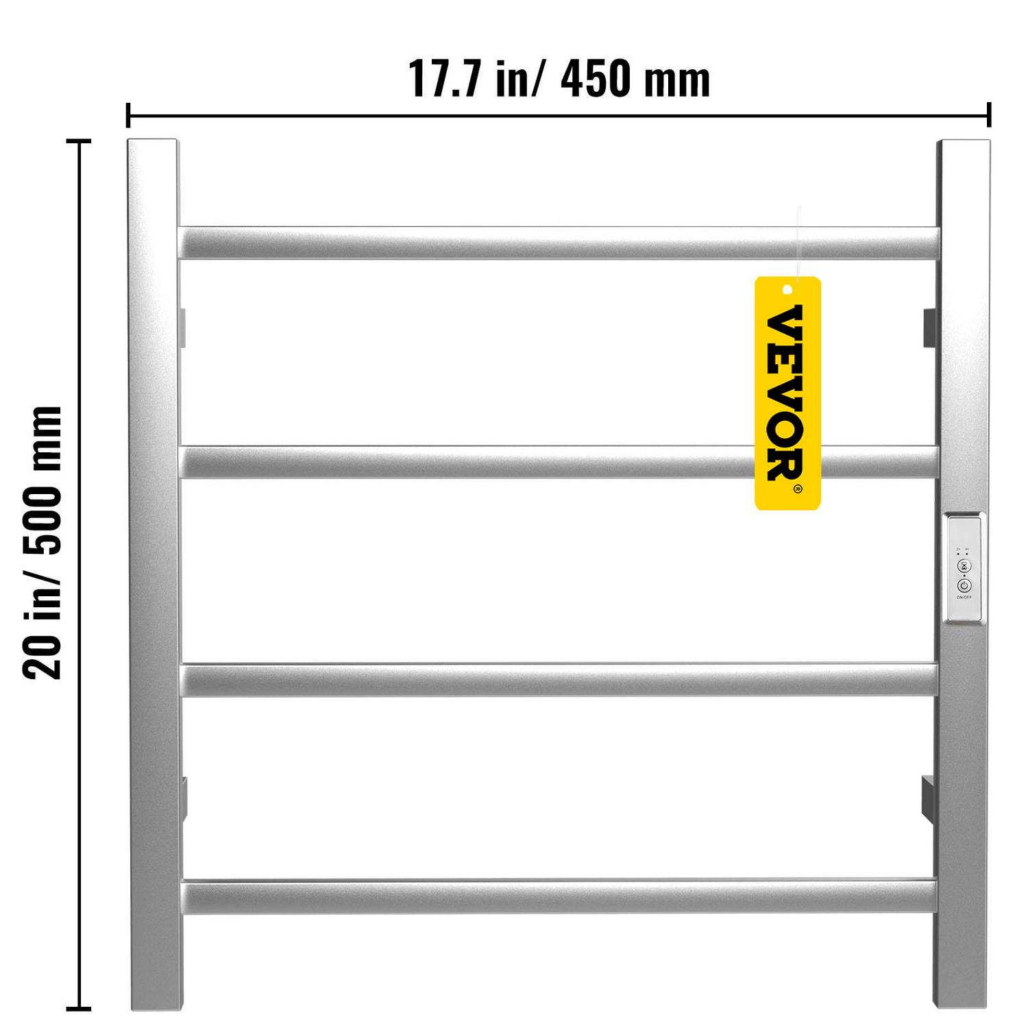 VEVOR Heated Towel Rack, 4 Bars Design, Polishing Brushed Stainless Steel Electric Towel Warmer with Built-in Timer, Wall-Mounted for Bathroom, Plug-in/Hardwired, UL Certificated, Silver