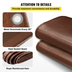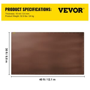 VEVOR Heavy Duty Tarp, 30 x 40 ft 16 Mil Thick, Waterproof and Sunproof Outdoor Cover, Rip and Tear Proof PE Tarpaulin with Grommets and Reinforced Edges for Truck, RV, Boat, Roof, Tent, Camping, Brown