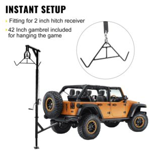 VEVOR Hitch Mounted Deer Hoist, 400lbs Capacity Hitch Game Hoist, 2” Truck Hitch Deer Hoist with Winch Lift Gambrel Set, Foot Base, Adjustable Height and 360 Degrees Swivel for Hunting, Hanging