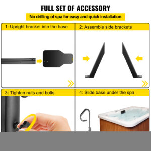– 600 lbs Load & Under-spa Base: Slide-under base design means the tub handrail can be mounted on any position of the above-ground hot tub and has no damage to your spa. Hold up to 600 lbs/ 280 kg when the tub is full of water. Therefore, with the heavy load capacity, your family can securely get in and out of the spa.
