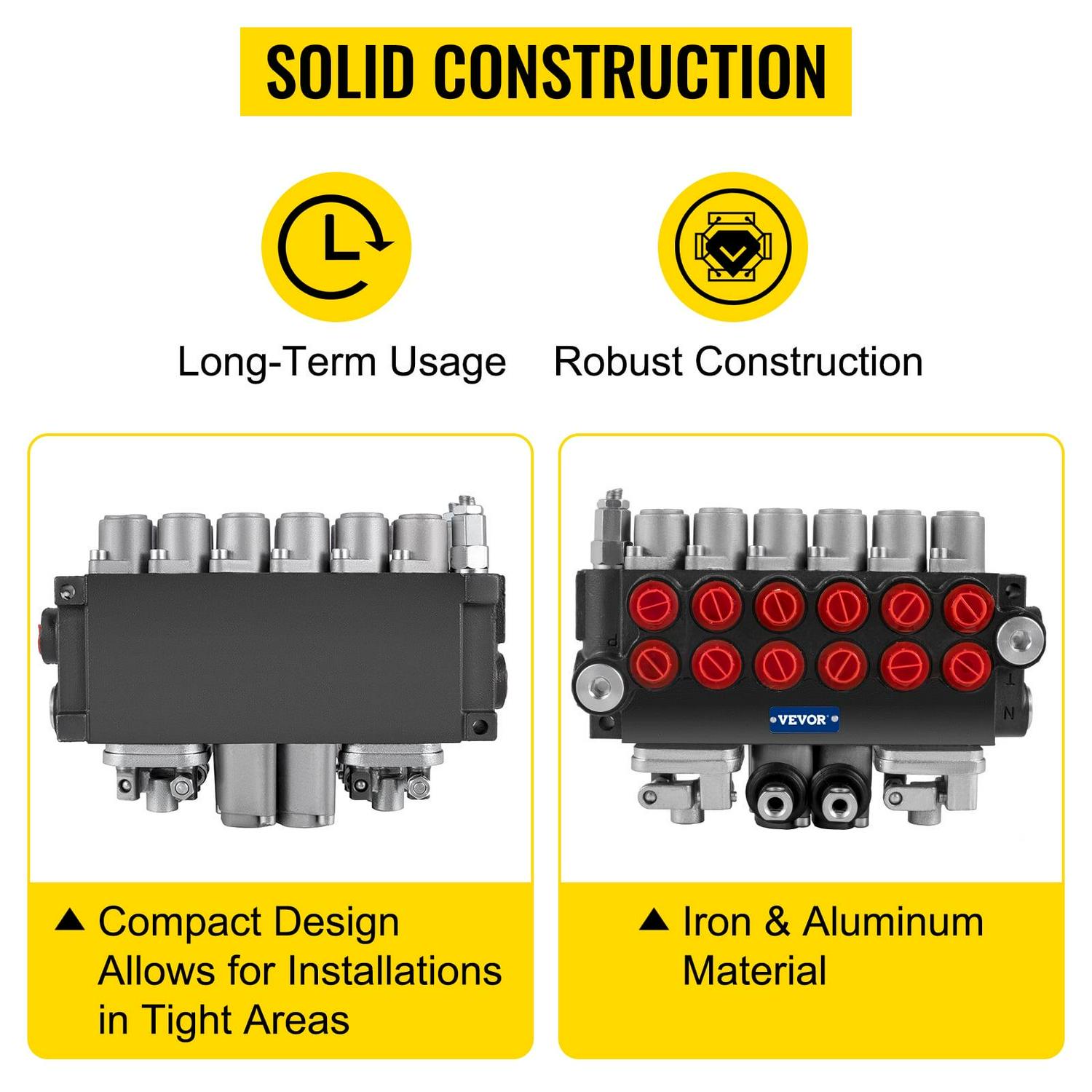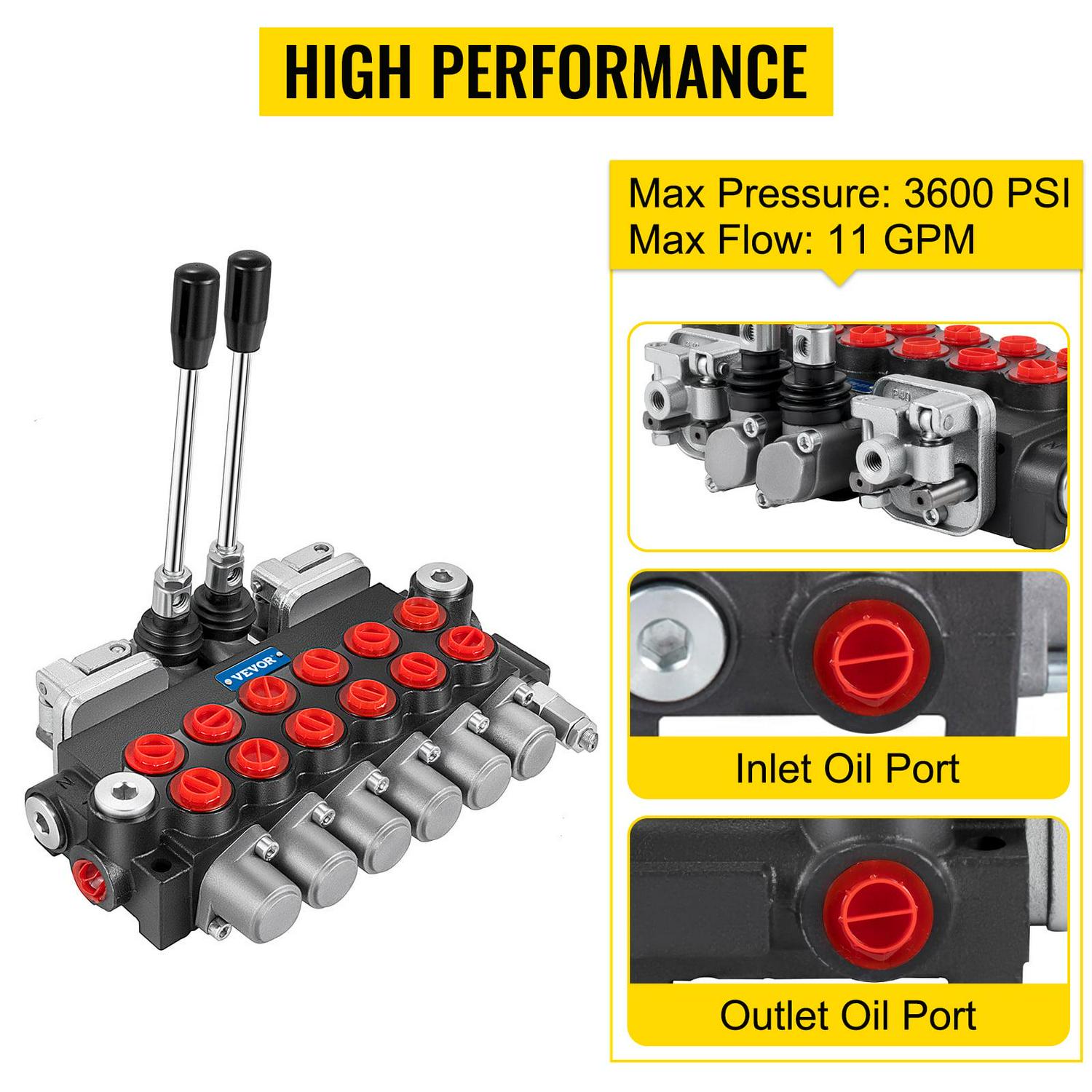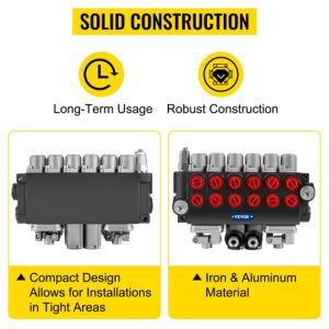 VEVOR Hydraulic Directional Control Valve, 6 Spool Hydraulic Spool Valve, 11 GPM Hydraulic Loader Valve, 4500 PSI Directional Control Valve, Hydraulic Valves And Controls For Tractors Loaders Tanks