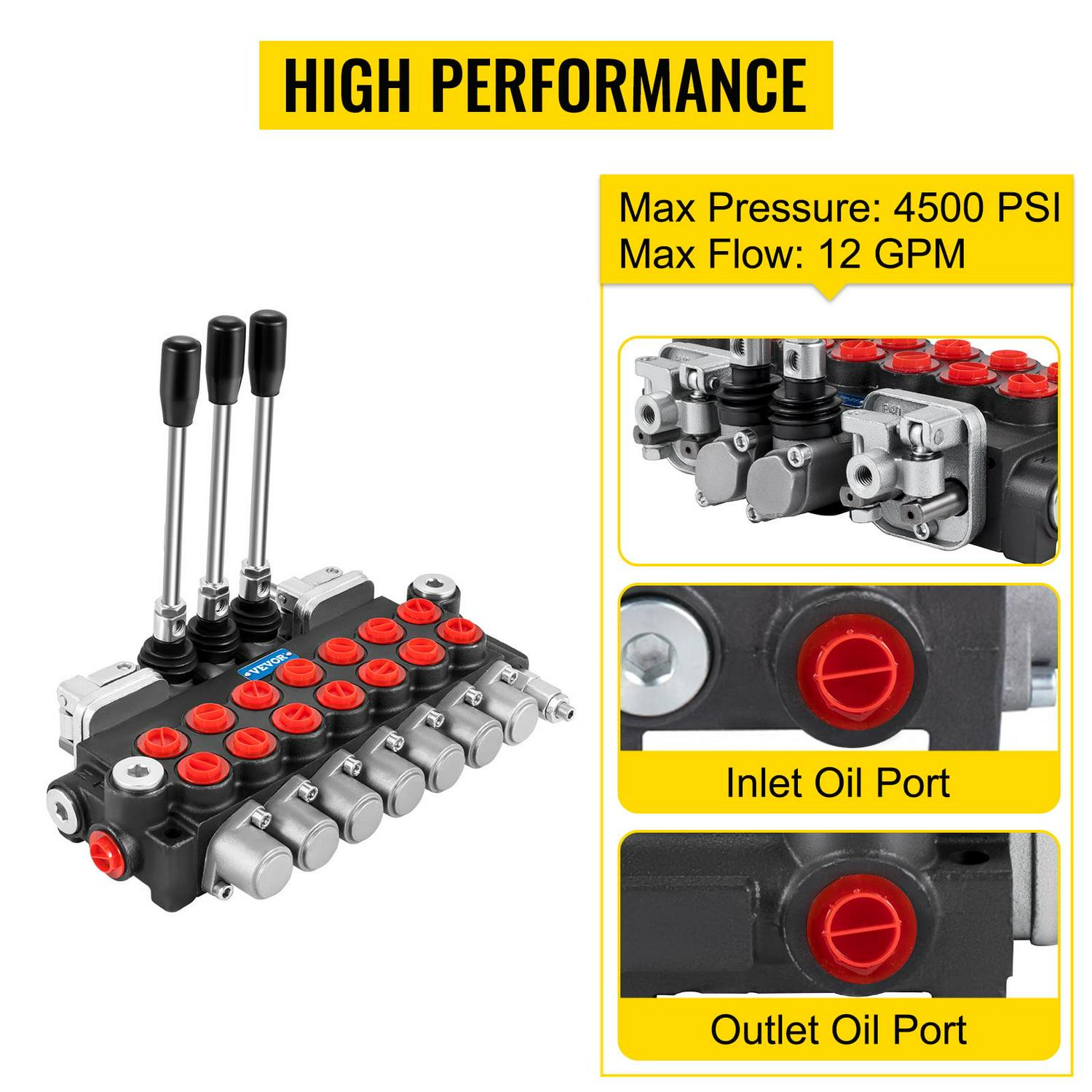 VEVOR Hydraulic Directional Control Valve, 7 Spool Hydraulic Spool Valve, 11 GPM Hydraulic Loader Valve, 4500 PSI Directional Control Valve, Hydraulic Valves And Controls For Tractors Loaders Tanks