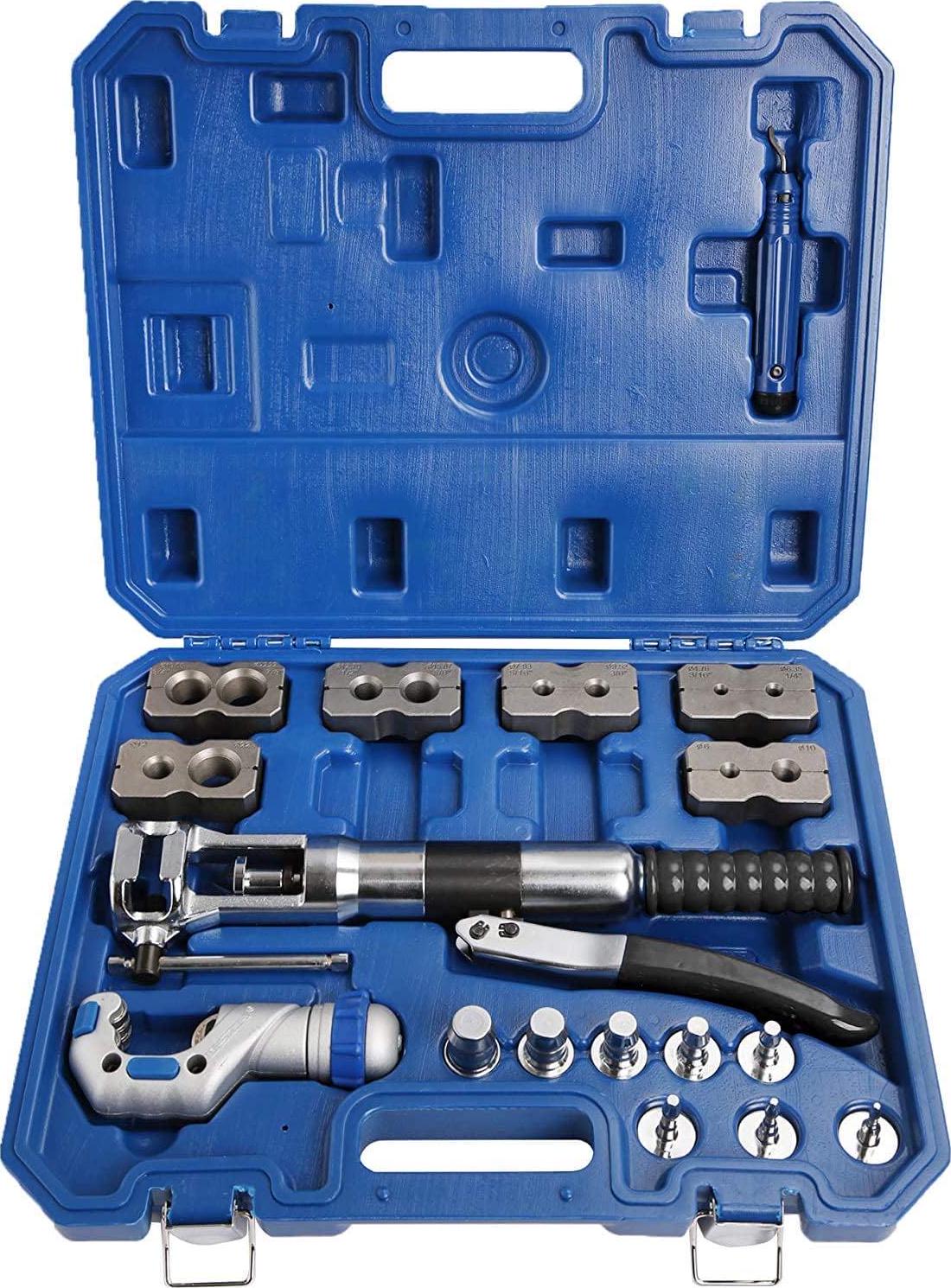 This hydraulic flaring tool kit is compact and easy to store with a durable plastic tool case. It saves space and makes the flaring kit easy to carry.