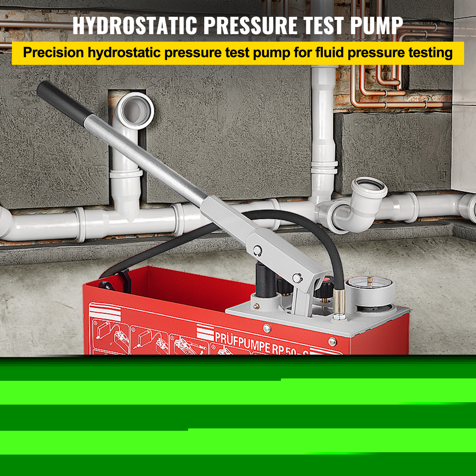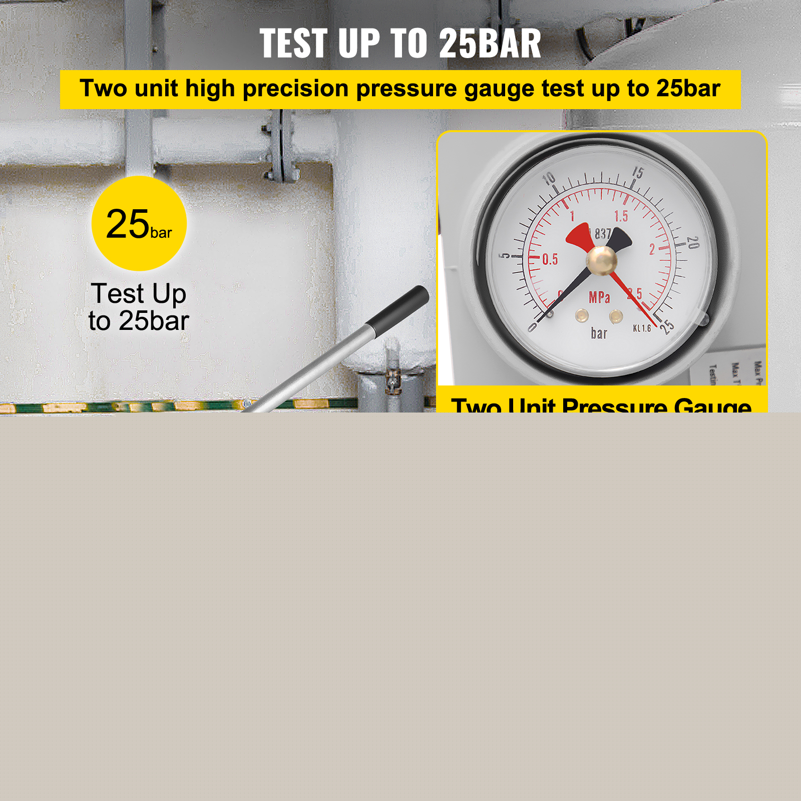 VEVOR Hydrostatic Pressure Test Pump, Test Up to 25 bar/2.5 MPa, 3.2 Gallon Tank, Hydraulic Manual Water Pressure Tester Kit w/ Two Unit Gauge and R 1/2 Connection, for Pipeline Fluid Pressure Testing