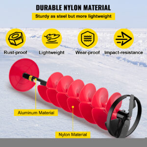 VEVOR Ice Drill Auger, 6” Diameter Nylon Ice Auger, 39” Length Ice Auger Bit,Auger Drill with 11.8 Extension Rod,Auger Bit w/ Drill Adapter,Top Plate and Blade Guard for Ice Fishing Ice Burrowing Red
